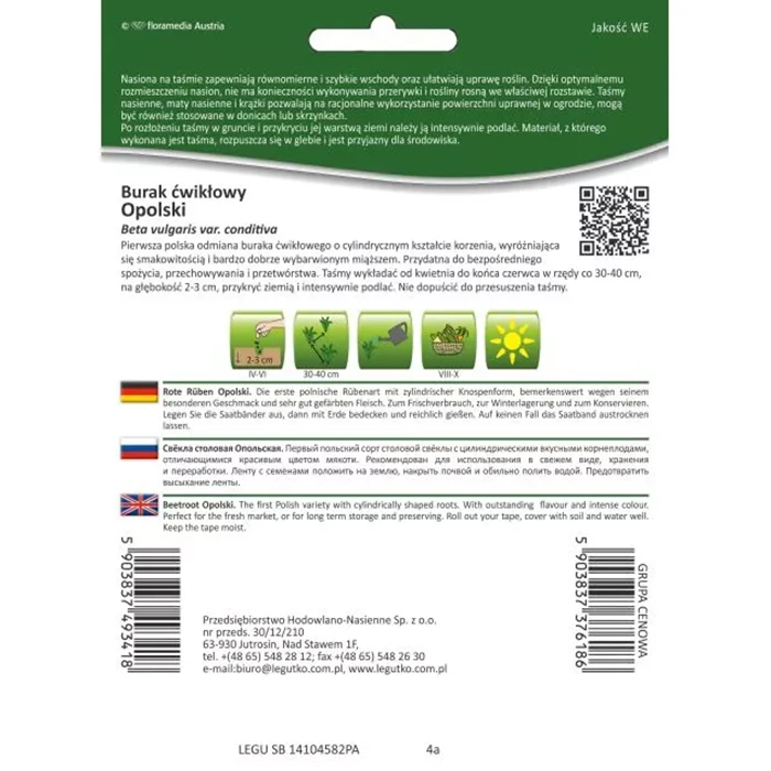 Burak ćwikłowy ‘Opolski’ – nasiona na taśmie 6 m, wysoki plon i cylindryczne korzenie – Legutko