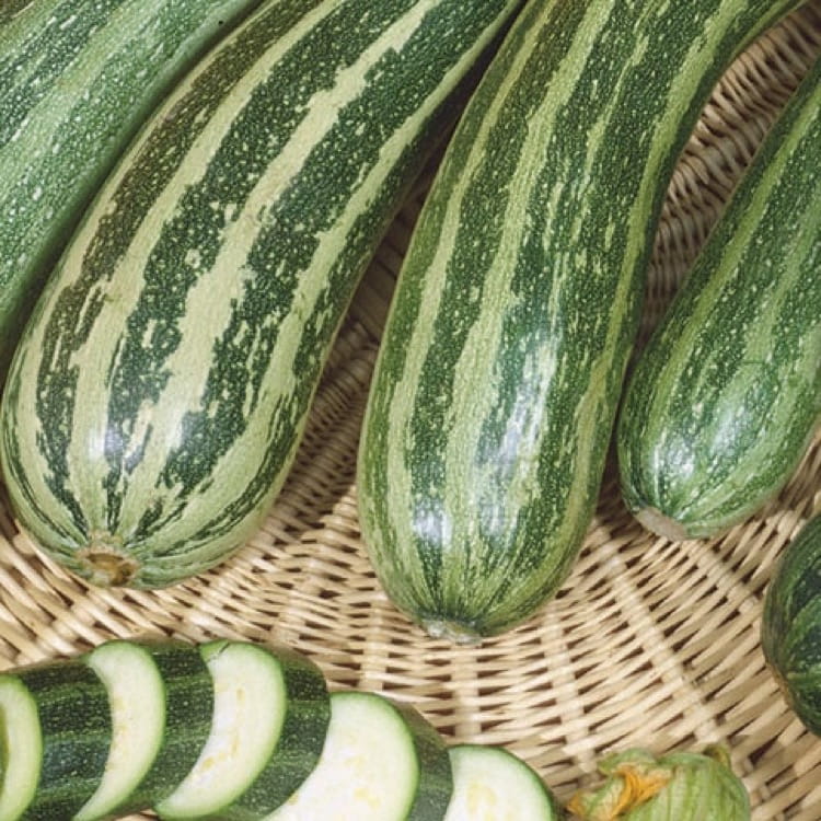 Na surowo, w sałatkach, na grillu czy na parze - cukinia "Coucourzelle" smakuje wyjątkowo pysznie, a przy tym bardzo dobrze wygląda! Długie owoce mają jasne i ciemnozielone paski.