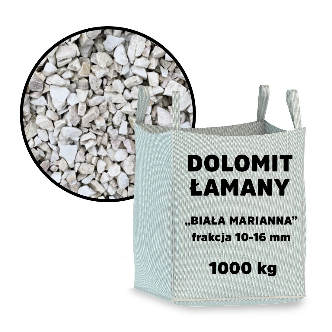 Dolomit łamany „Biała Marianna” 10–16 mm 1 tona (big bag) – grys ozdobny biały