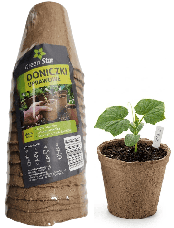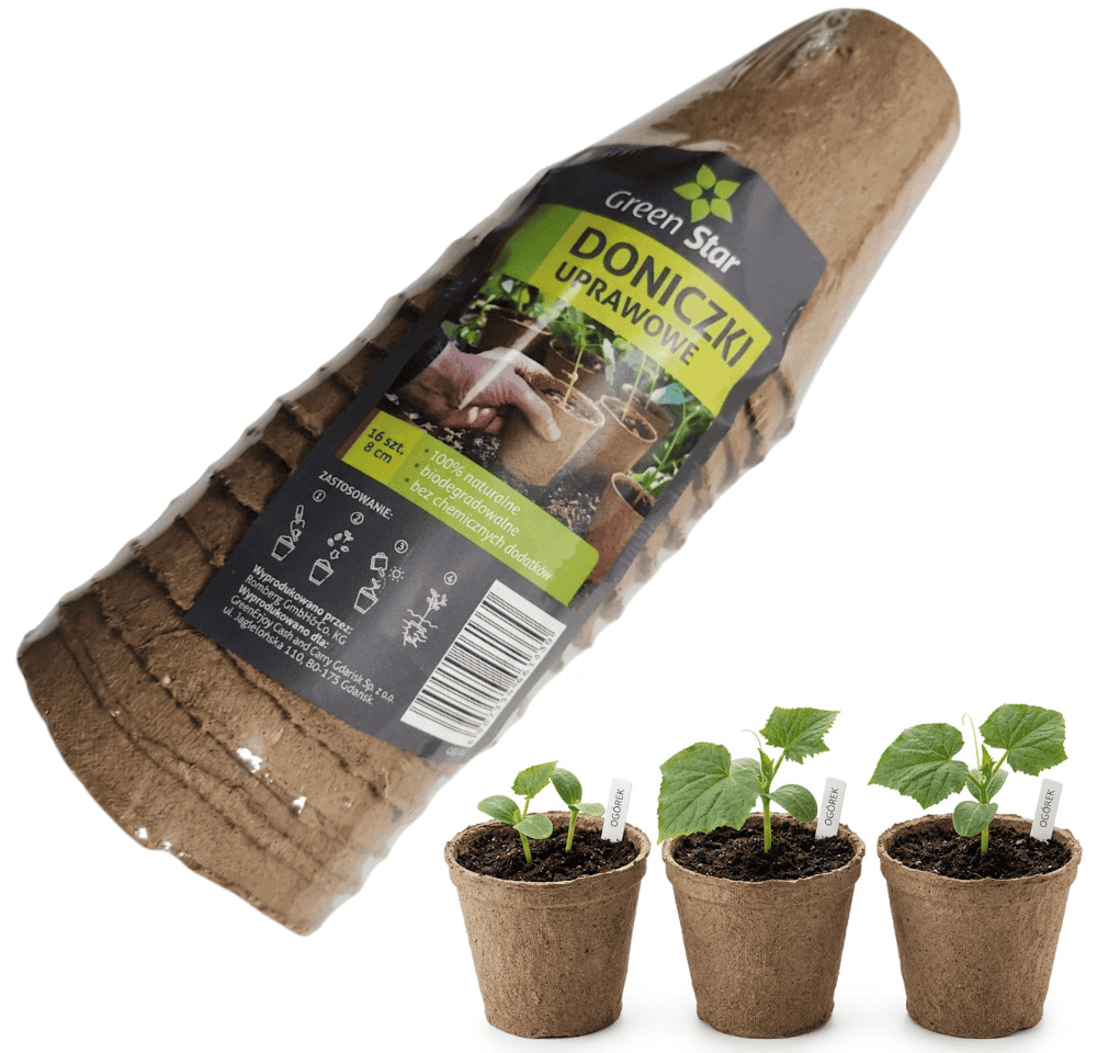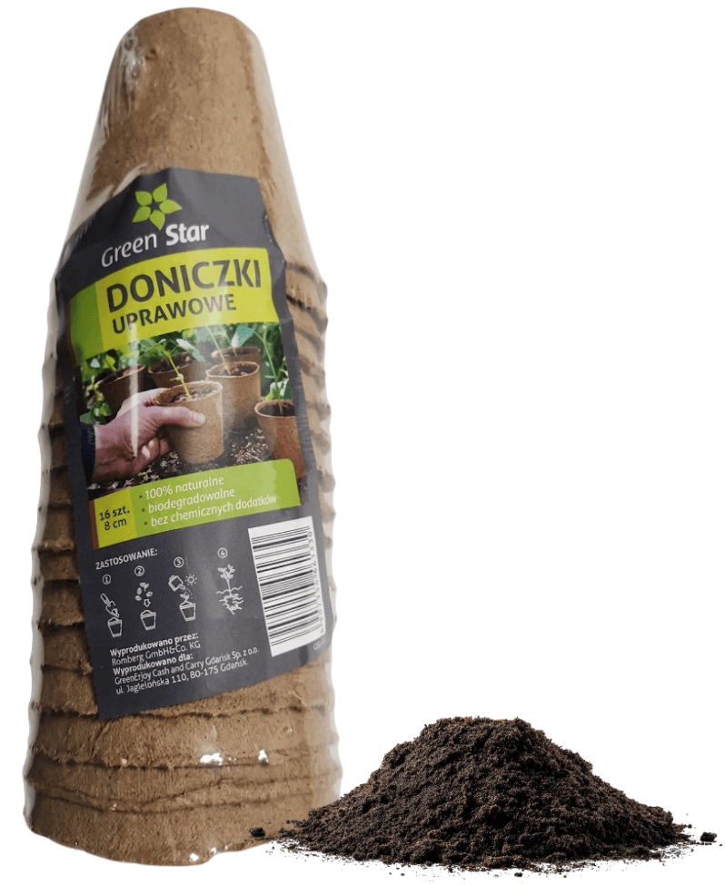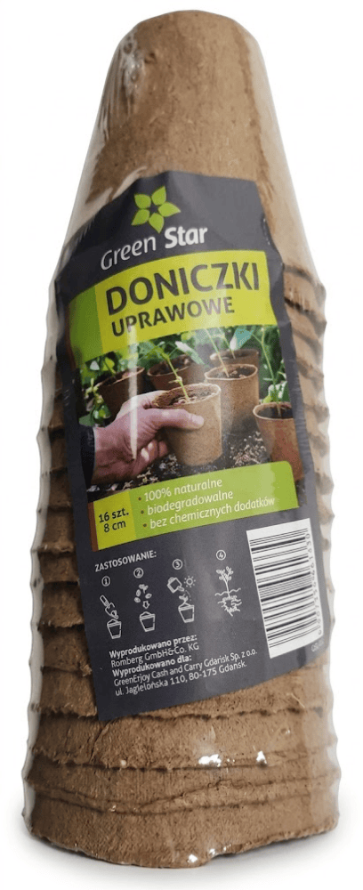 Doniczki kokosowe do rozsady – 8 cm x 16 szt. – sadzenie bez przesadzania – Green Star