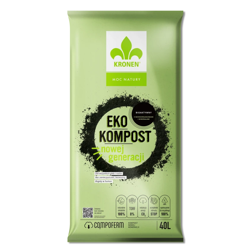 Eko kompost Kronen to nowoczesny, bioaktywny kompost stworzony z myślą o zdrowych, obficie plonujących uprawach warzywnych i owocowych. Powstaje w procesie fermentacji beztlenowej, dzięki czemu zachowuje wysoką zawartość mikroorganizmów, minerałów oraz substancji organicznych, nie wydzielając przy tym nieprzyjemnych zapachów.