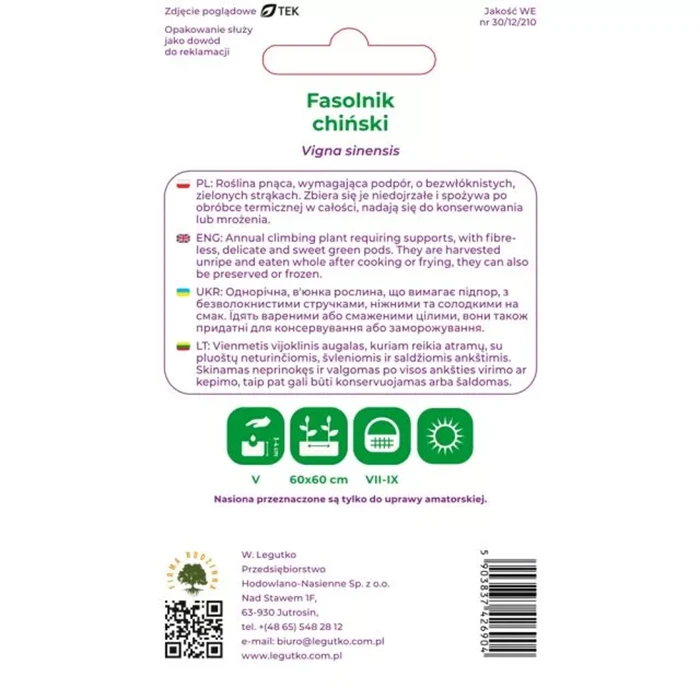 Fasolnik chiński – nasiona pnącej odmiany o bardzo długich, słodkich strąkach – Legutko