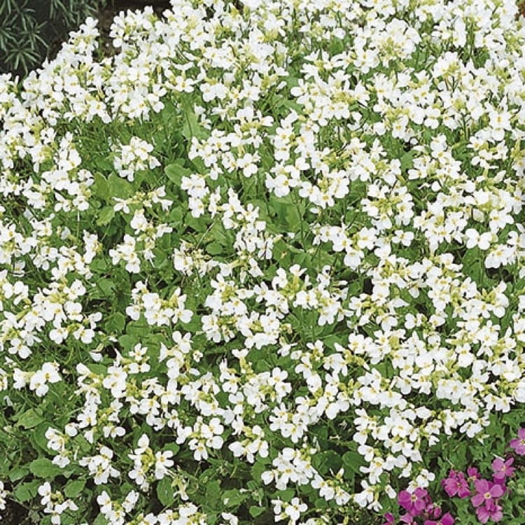 Wieloletnia bylina poduszkowa o białym kwiatostanie z nadziemnymi rozłogami, do uprawy na rabatach, w wygrodzeniach i ogrodach skalnych.