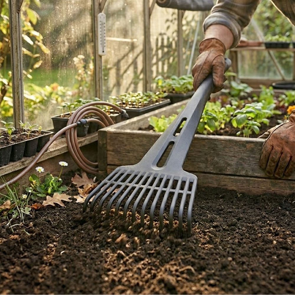 Grabki ogrodowe z tworzywa sztucznego Small Garden Tool 55 cm Green Star to wyjątkowo praktyczne i lekkie narzędzie zaprojektowane do precyzyjnych prac porządkowych w ogrodzie. Dzięki wydłużonemu trzonkowi o łącznej długości aż 55 cm, pozwalają one na wygodne sprzątanie liści, skoszonej trawy czy drobnych zanieczyszczeń bez konieczności nadmiernego schylania się. Wykonanie z wysokiej jakości tworzywa gwarantuje pełną odporność na korozję oraz zmienne warunki atmosferyczne, co przekłada się na trwałość przez wiele sezonów. Gęsty układ zębów sprawia, że narzędzie jest niezwykle efektywne przy oczyszczaniu rabat kwiatowych, skalniaków oraz wąskich przestrzeni między gęsto posadzonymi roślinami.