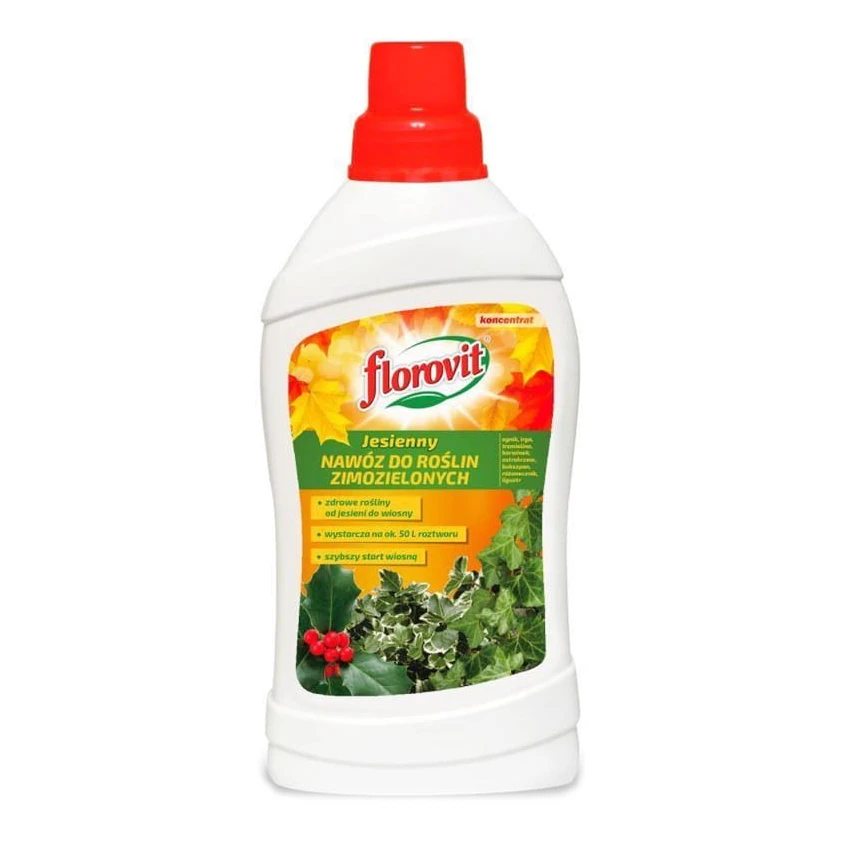 Jesienny nawóz do roślin zimozielonych Florovit 1 l – Tajemnica zielonego ogrodu przez całą zimę