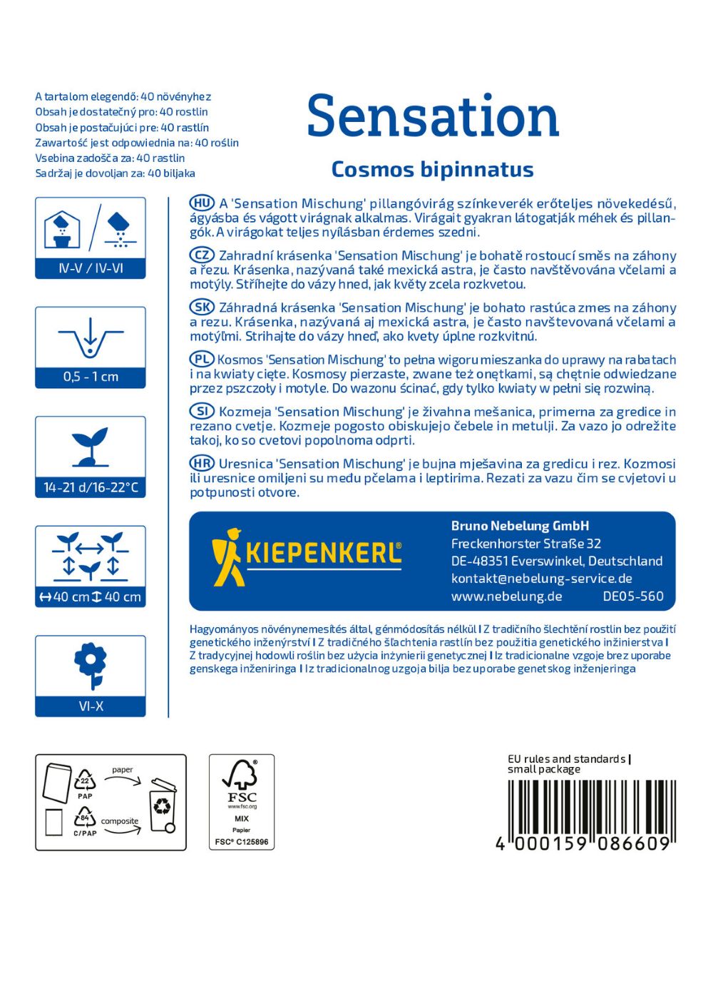 Kosmos podwójnie pierzasty ‘Sensations-Mix’ – wysokie, jednoroczne kwiaty o dużych barwnych koszyczkach – Nasiona Kiepenkerl