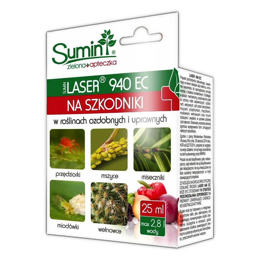 Laser 940 EC 25 ml – preparat na Szkodniki w Uprawach Warzyw, Ziół, Owoców, Iglaków i innych roślin ozdobnych – Sumin