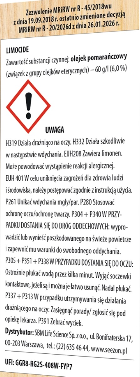 Limocide All in 1, w postaci koncentratu do rozcieńczania wodą, do ochrony przed szkodnikami, w tym przędziorkami, i chorobami grzybowymi uprawianych w gruncie i pod osłonami wybranych warzyw oraz krzewów i drzew owocowych, róż, a także innych roślin ozdobnych.