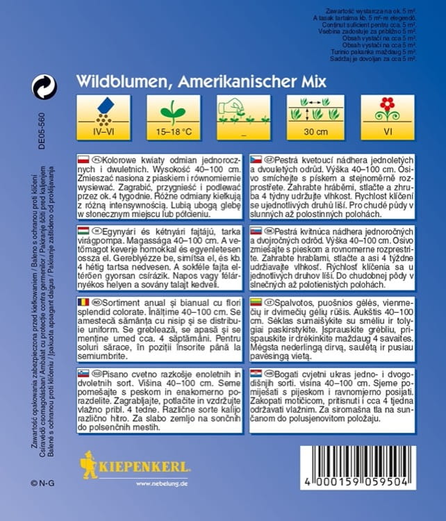 Każdy, kto szczególnie lubi dziki, romantyczny, naturalny urok kwietnych łąk, dokona dobrego wyboru wybierając tą mieszankę kwiatową. Zawiera ona wiele dzikich gatunków pochodzących z Ameryki Północnej i Kalifornii, takich jak maki kalifornijskie, jeżówki purpurowe, chabry i przeróżne byliny.