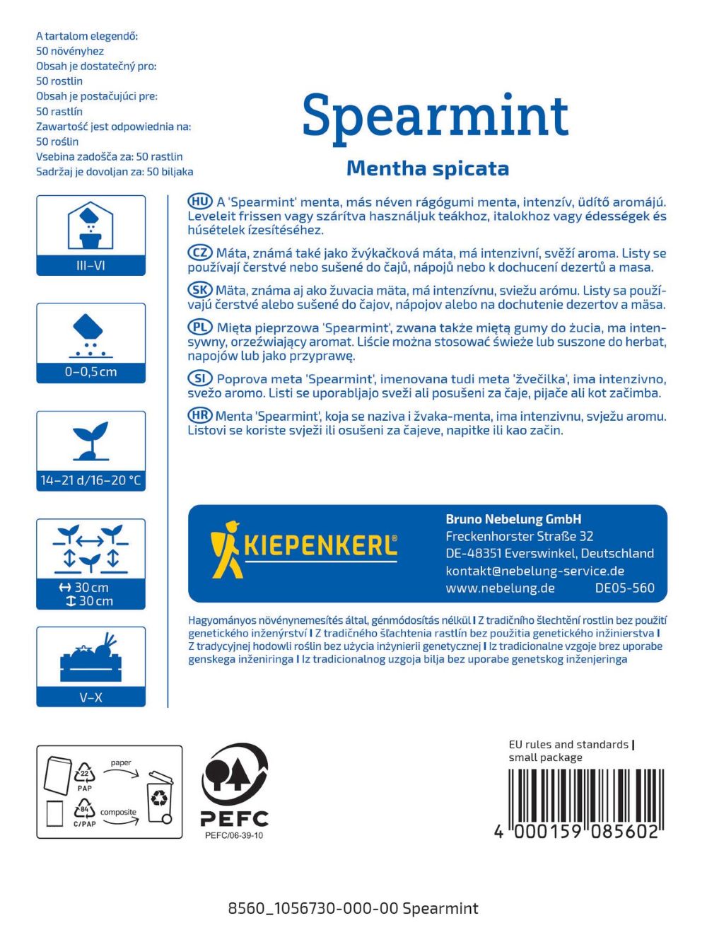 Mięta pieprzowa ‘Spearmint’ – intensywnie aromatyczna, zimotrwała – nasiona Kiepenkerl