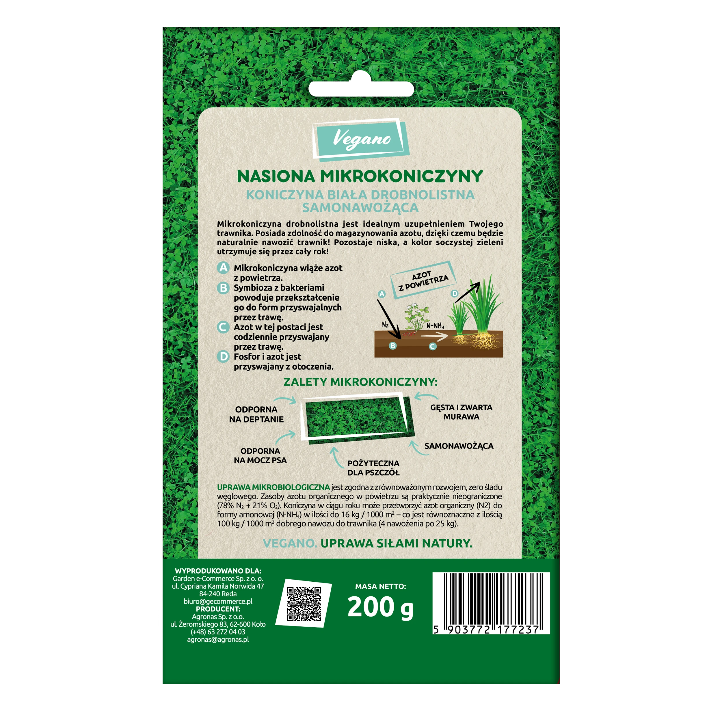 Mikrokoniczyna zagęszcza trawnik, wypiera chwasty, zatrzymuje wilgoć – nasiona Vegano 0,2 kg