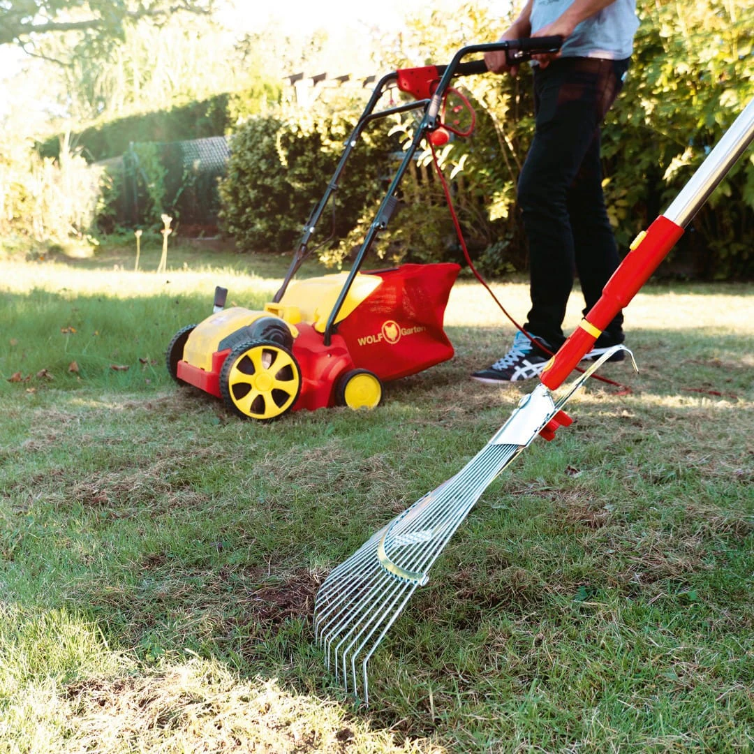 Miotłograbie są kompatybilne z trzonkami i końcówkami do narzędzi Wolf Garten.