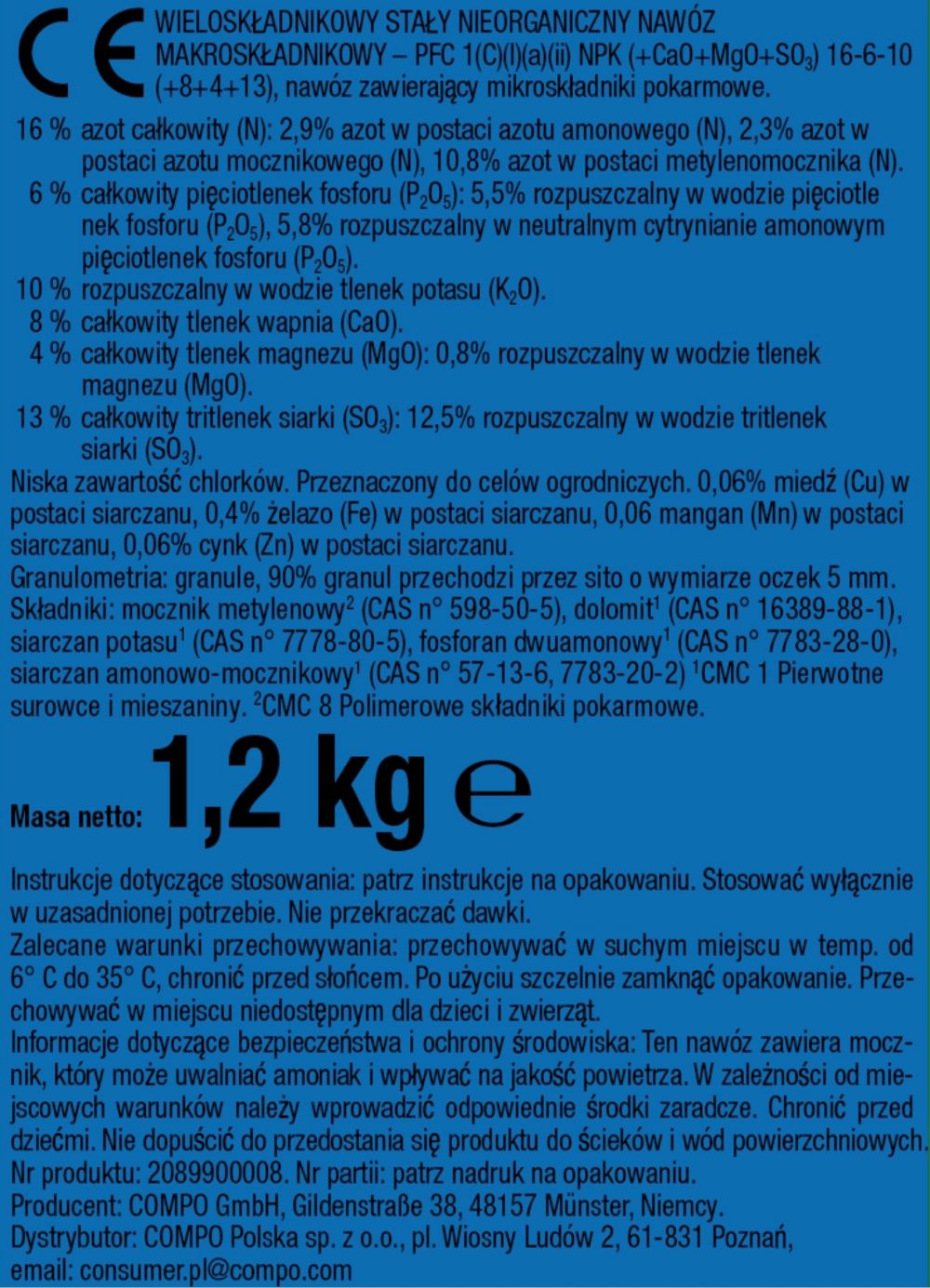 Nawóz do roślin balkonowych długo działający – 1,2 kg – kwitnienie do 6 miesięcy – Compo