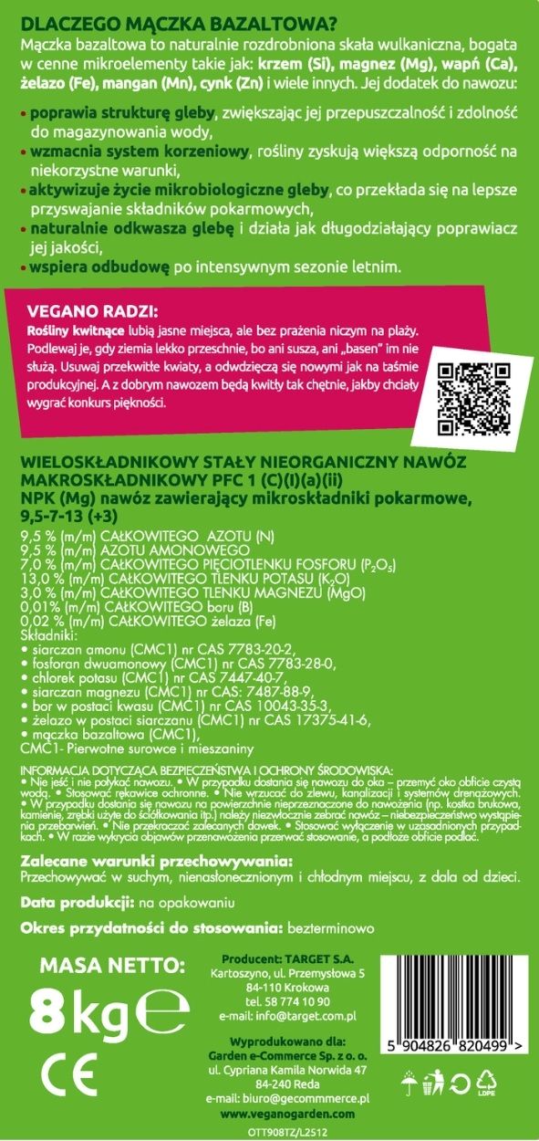 Nawóz do roślin kwitnących z mączką bazaltową Vegano – 8 kg