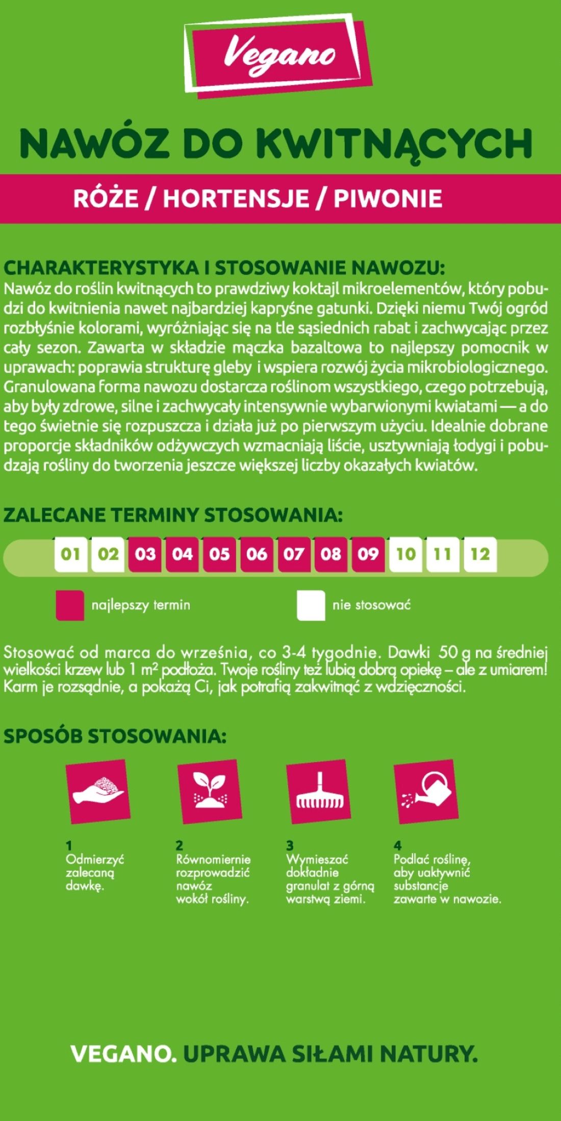 Nawóz należy stosować regularnie w sezonie wegetacyjnym dla utrzymania efektów kwitnienia.