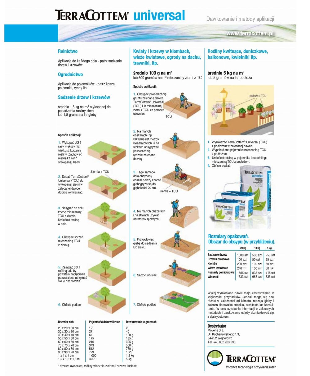 - Jedna aplikacja na cały sezon - w przeciwieństwie do tradycyjnych nawozów, TerraCottem stosuje się tylko raz, podczas sadzenia. Nie ma potrzeby pamiętania o regularnym nawożeniu.