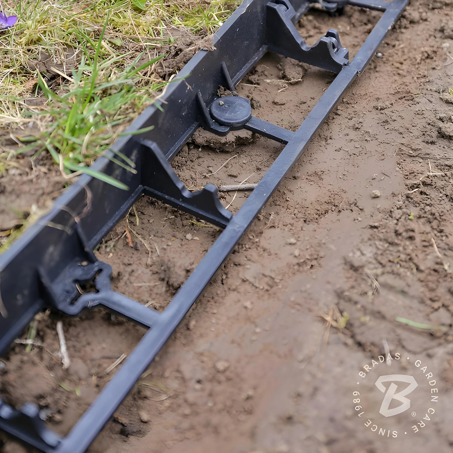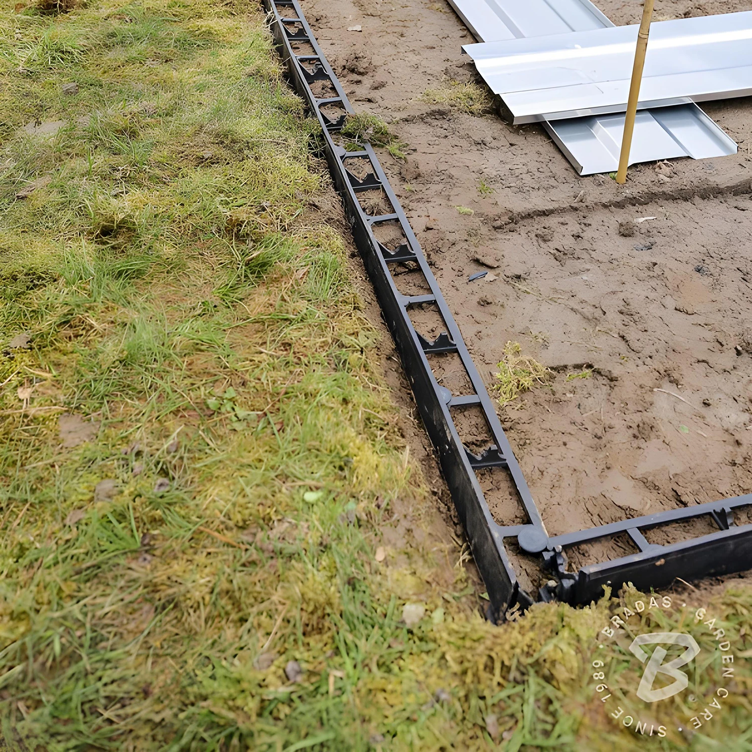 Opakowanie zawiera 1 metr obrzeża, o szerokości 45 mm, w kolorze czarnym, które po zamontowaniu niemal zlewa się z ziemią i jest praktycznie niewidoczne.