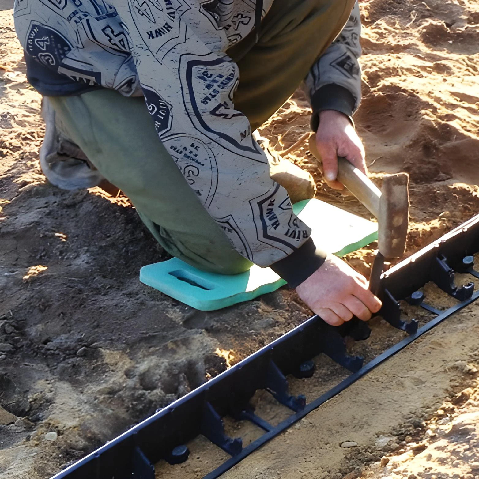 Obrzeże jest proste w montażu i kształtowaniu. Wystarczy młotek, za pomocą którego wbijesz w glebę kotwy mocujące.