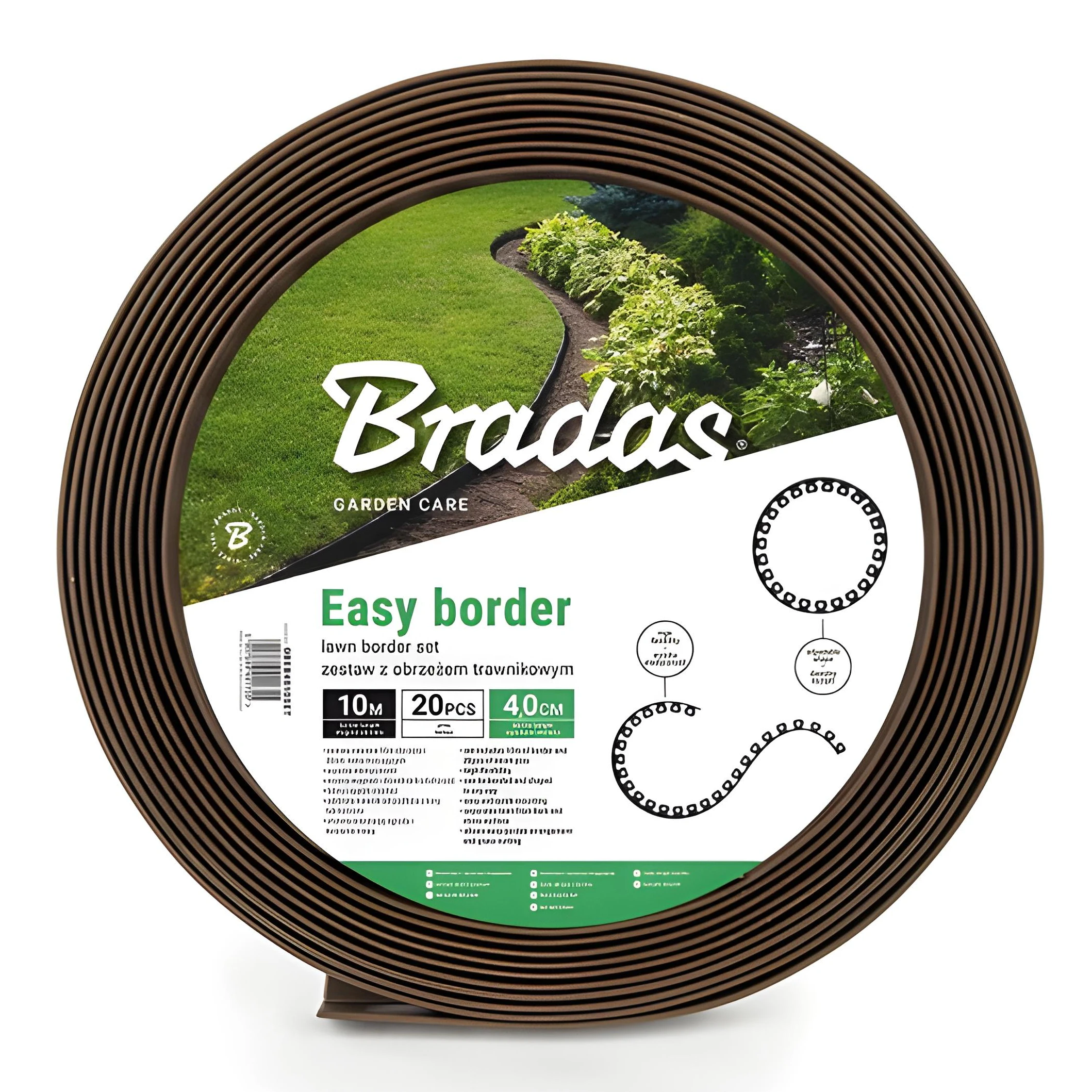 Obrzeże trawnikowe EASY BORDER brązowy – 4 cm x 10 m + kotwy - Bradas