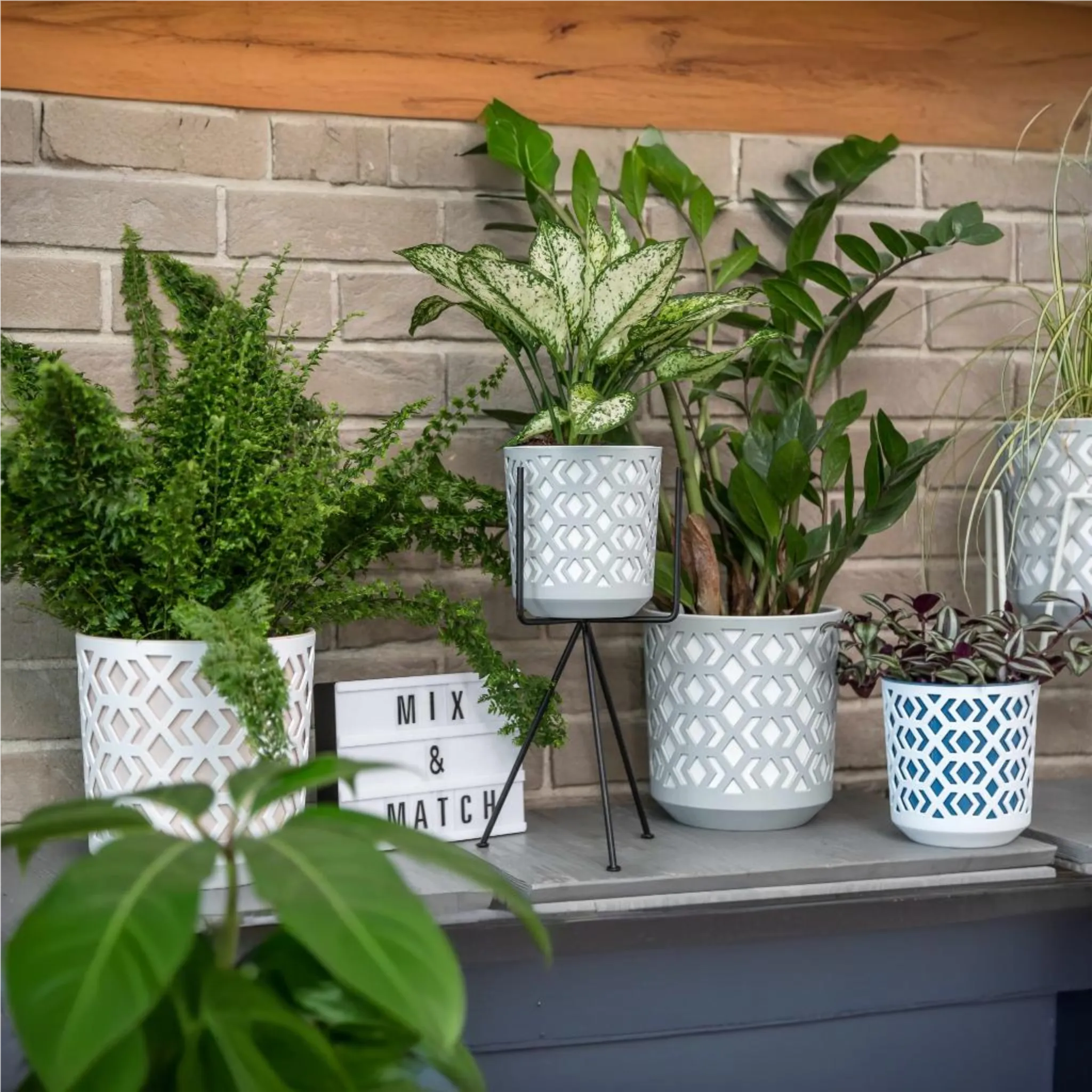 Model Aztek to kolekcja donic charakteryzująca się nowoczesnym i oryginalnym designem opartym na geometrycznym wzorze. Składa się z dwóch części - ażurowej osłonki, pełniącej również funkcję podstawki oraz kolorowego wkładu z otworami pozwalającymi na odpływ nadmiaru wody. Takie połączenie daje niezwykły efekt gry świateł i cieni.