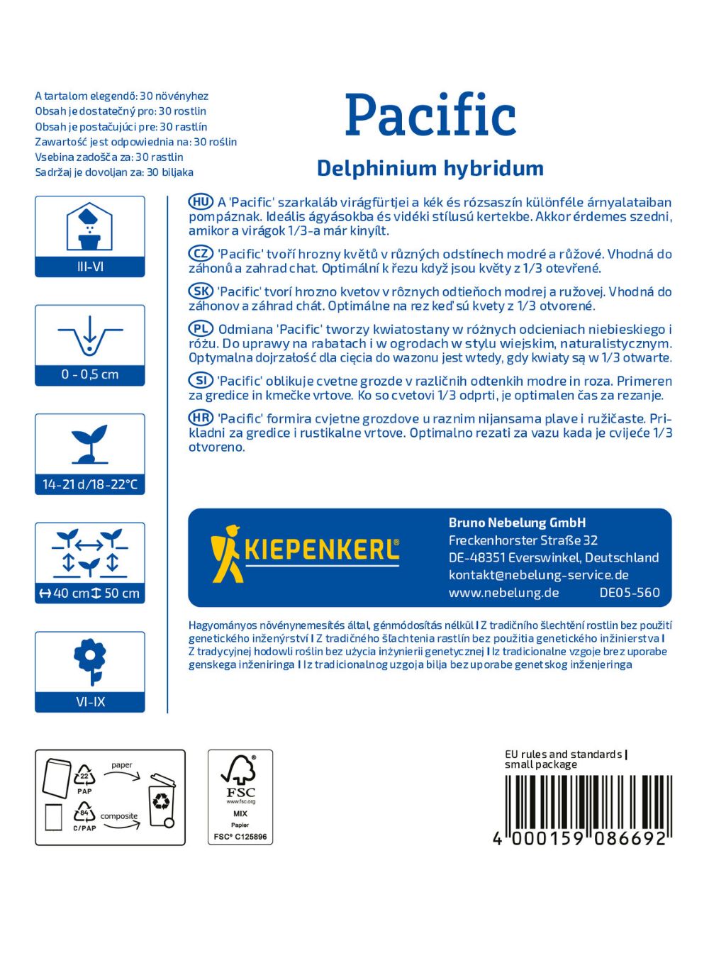 Ostróżka Ogrodowa Pacific – wieloletnia bylina o wysokich, eleganckich kwiatostanach – Nasiona Kiepenkerl