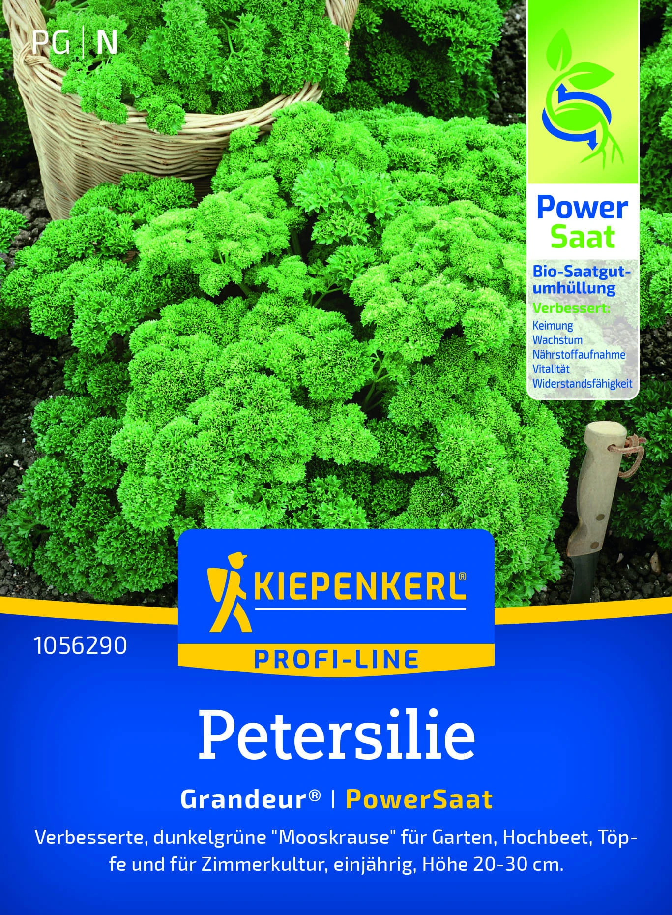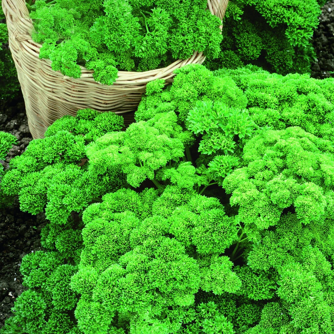 Pietruszka "Grandeur®" (Petroselinum crispum) to odmiana o ciemnozielonych, gęsto kędzierzawych liściach i wyprostowanym pokroju, który znacznie ułatwia zbiór. Rośliny prezentują się bardzo estetycznie i nadają się zarówno na rabaty, jak i do uprawy doniczkowej na zewnątrz oraz w pomieszczeniach.
