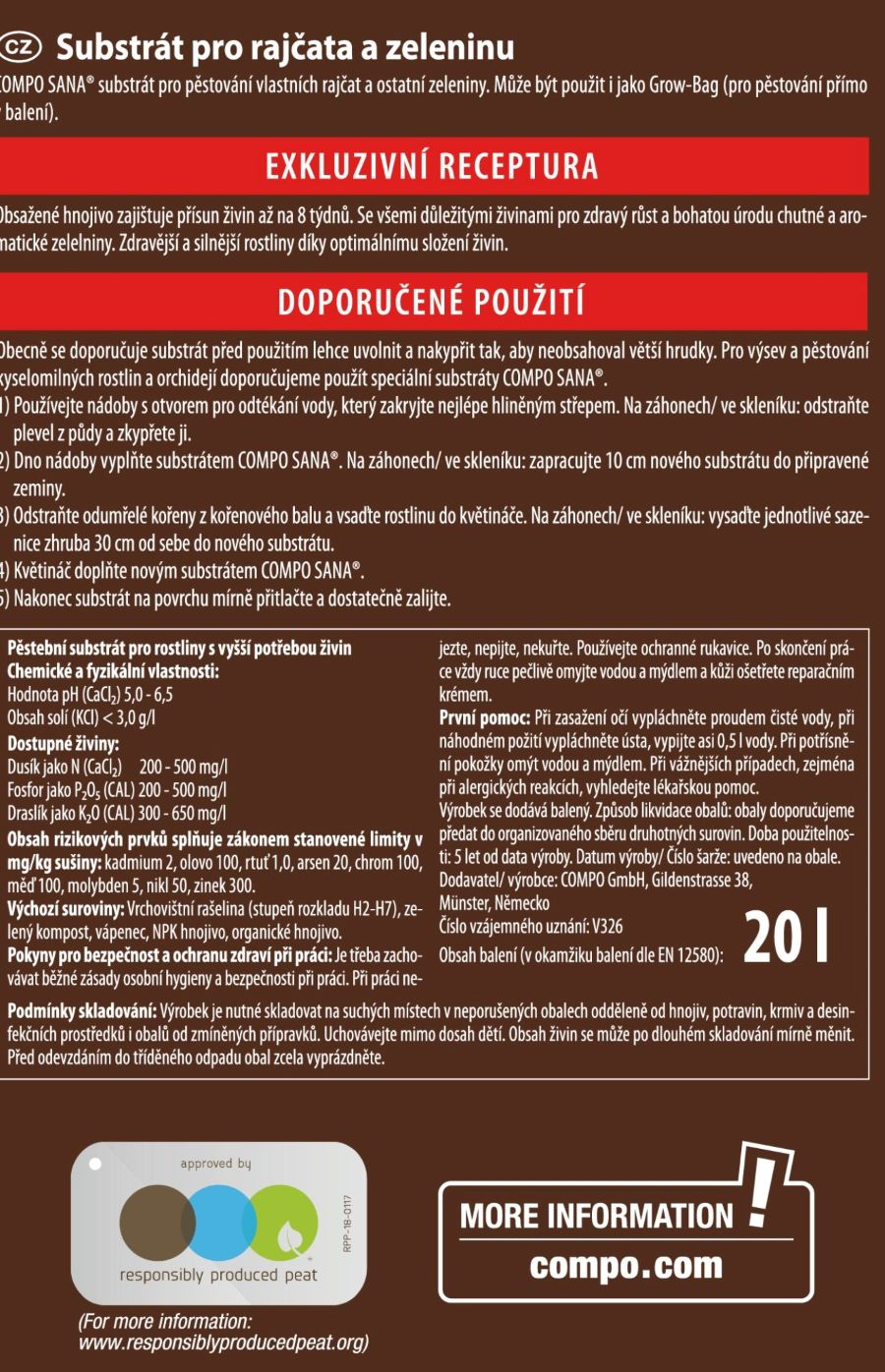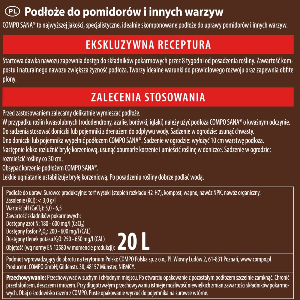 Podłoże do pomidorów i warzyw marki Compo to wysokiej jakości, gotowa do użycia mieszanka stworzona z myślą o wymagających roślinach uprawnych. Doskonale sprawdza się zarówno w uprawie pomidorów, jak i innych warzyw, zapewniając im optymalne warunki do obfitego wzrostu oraz plonowania. Starannie dobrany skład podłoża gwarantuje odpowiednią strukturę - lekką i przepuszczalną, a jednocześnie zdolną do odpowiedniego magazynowania wody. Dzięki temu korzenie roślin mają stały dostęp do wilgoci i powietrza, co sprzyja ich zdrowemu rozwojowi oraz zwiększa odporność na niekorzystne warunki.