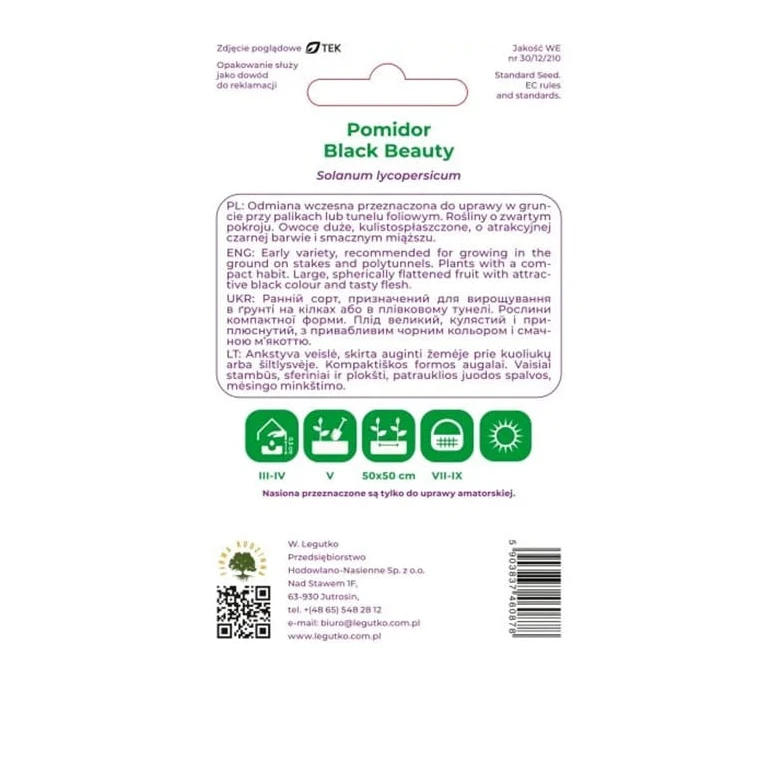 Pomidor ‘Black Beauty’ – nasiona czarnych, dużych owoców do gruntu i tunelu – Legutko