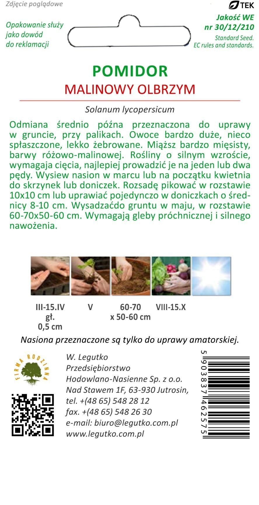 Pomidor Malinowy Olbrzym – nasiona Legutko 1 g