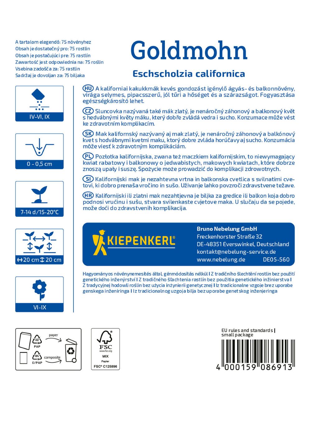 Pozłotka kalifornijska Goldmohn – złotożółte kwiaty na słońce – nasiona Kiepenkerl