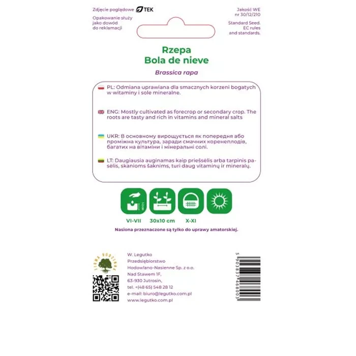 Rzepa "Bola de Nieve" – śnieżnobiała kula o delikatnym smaku – nasiona Legutko