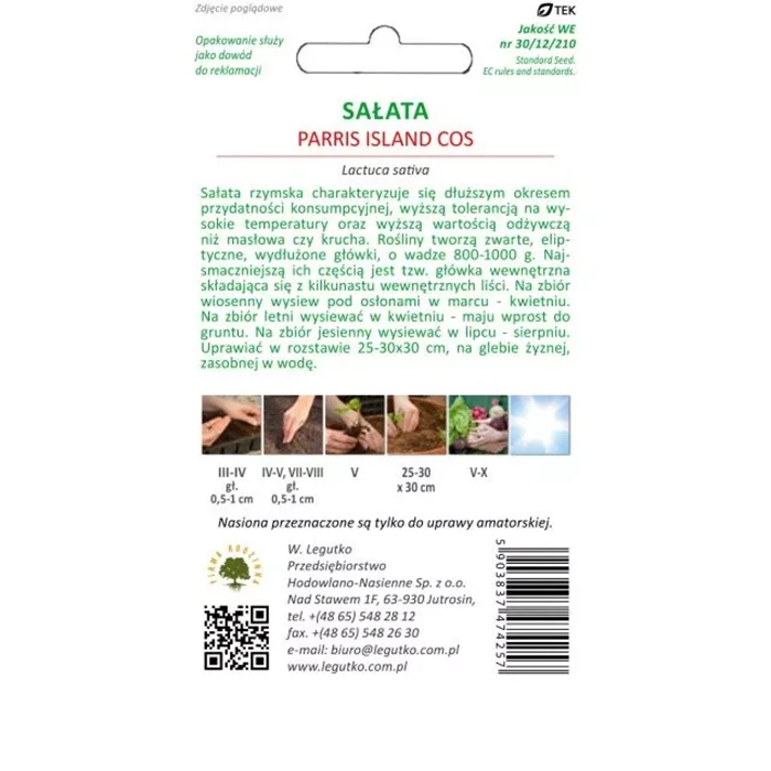 Sałata rzymska Paris Island Cos – duże, wydłużone główki odporne na upał – nasiona Legutko