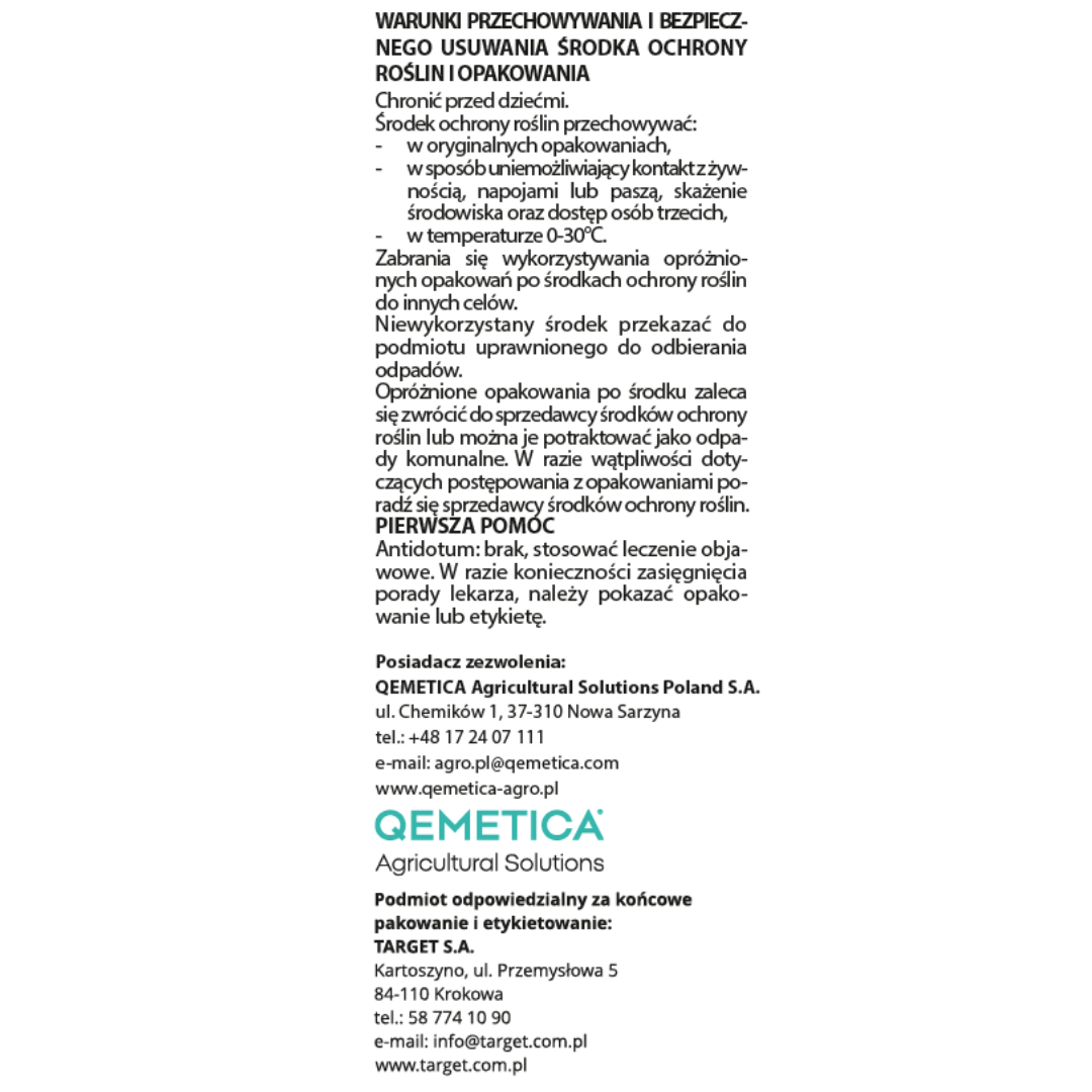 Ze środków ochrony roślin należy korzystać z zachowaniem bezpieczeństwa. Przed każdym użyciem przeczytaj informację zamieszczone w etykiecie i informacje dotyczące produktu. Nabycie środków ochrony roślin mogą dokonywać jedynie osoby pełnoletnie oraz posiadające kwalifikacje wymagane od osób nabywających środki ochrony roślin, określone w art.28 ustawy o środkach ochrony roślin z dnia 08.03.2013