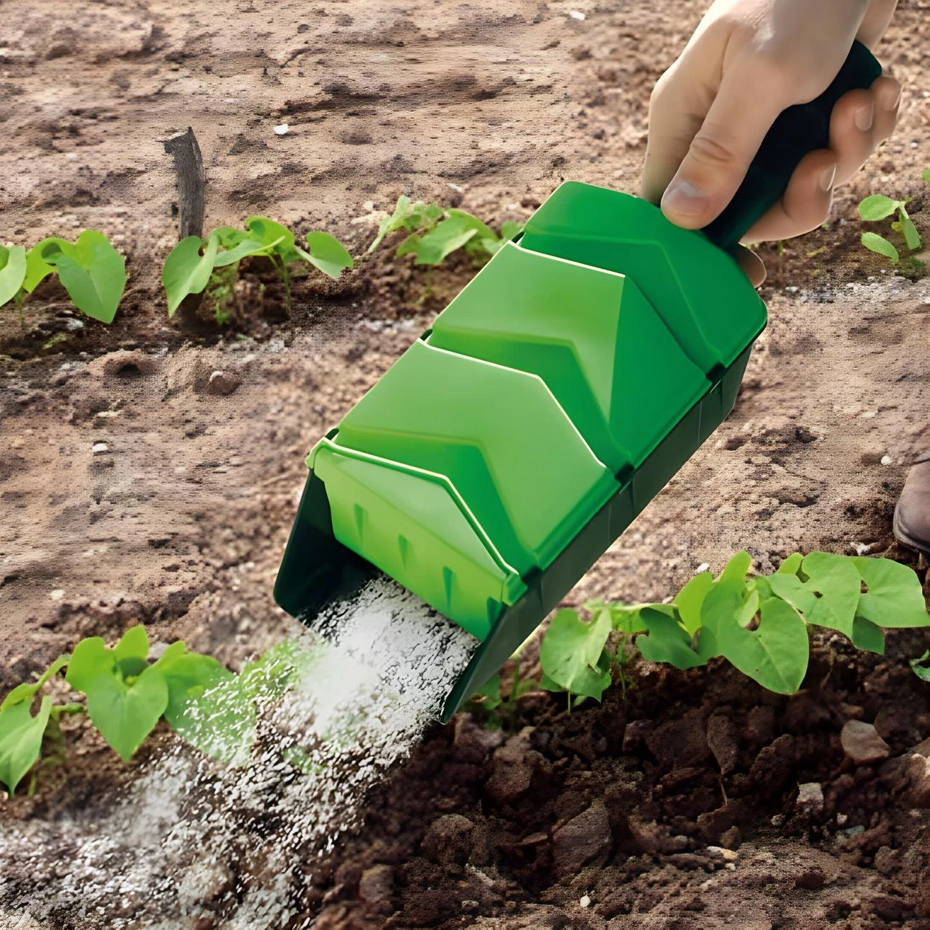 Ręczny rozsiewacz ogrodniczy do wszelkiego rodzaju materiałów sypkich, takich jak nawozy, nasiona i piasek, a nawet sól (w czasie zimy). Pojemnik mieści ok. 0,7 litra wsadu.