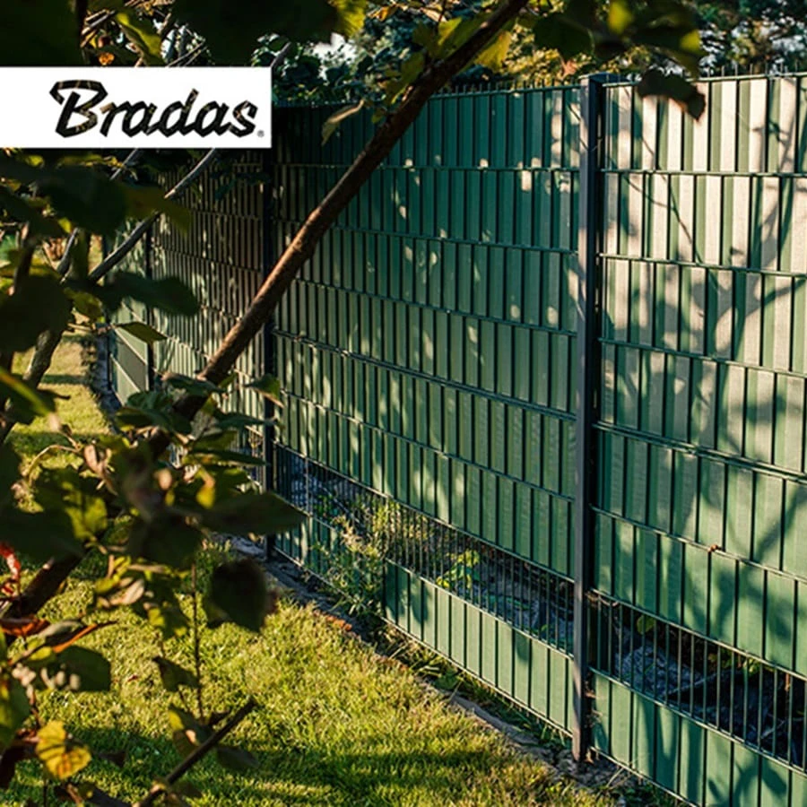 Estetyczne i zapewniające prywatność ogrodzenie? Montaż taśmy ogrodzeniowej na gotowych popularnych panelach ogrodzeniowych pozwoli uzyskać taki właśnie efekt. Sprawdza się także jako osłona barierek balkonowych.