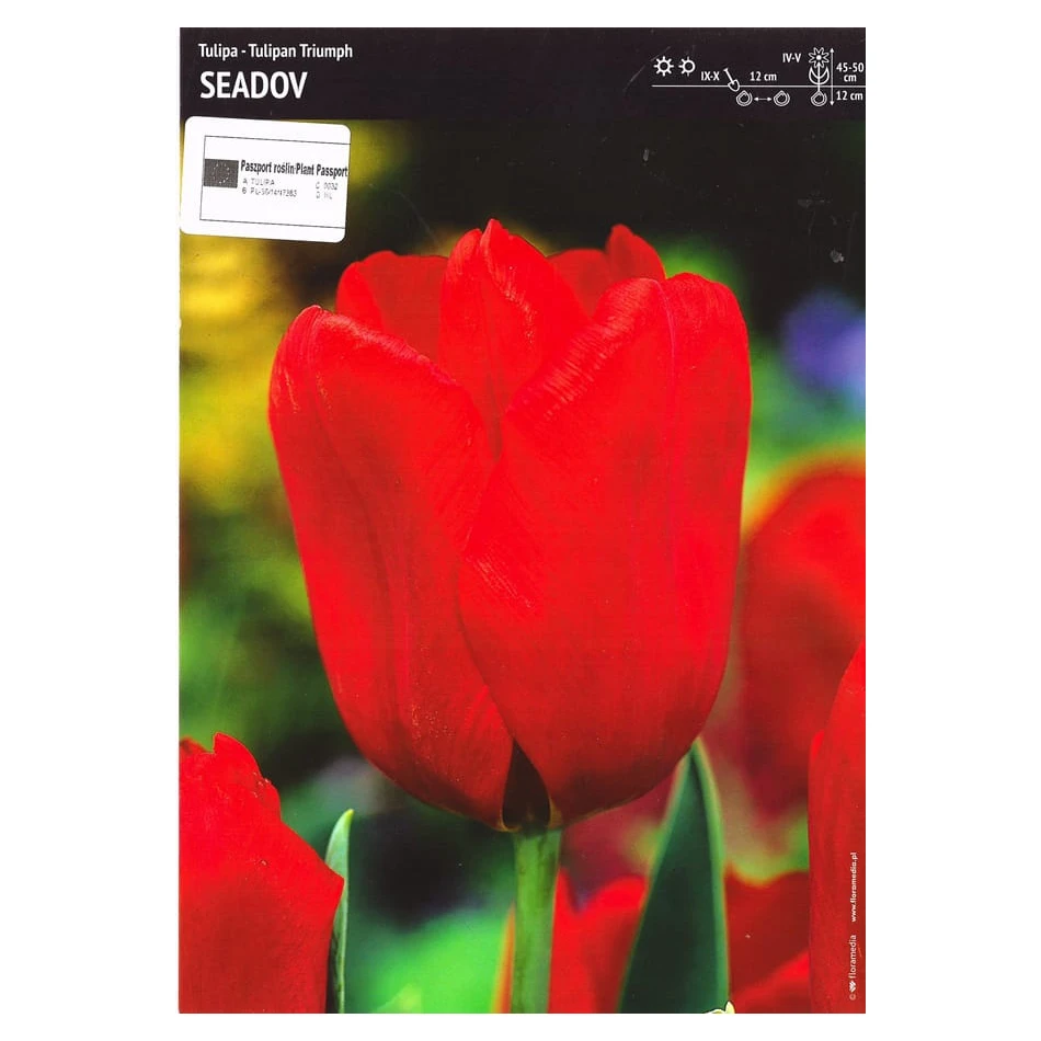 Tulipan "Seadov" dorasta jedynie do ok. 50 cm wysokości i wydaje na świat czerwone kwiaty. Odmiana kwitnie w kwietniu.