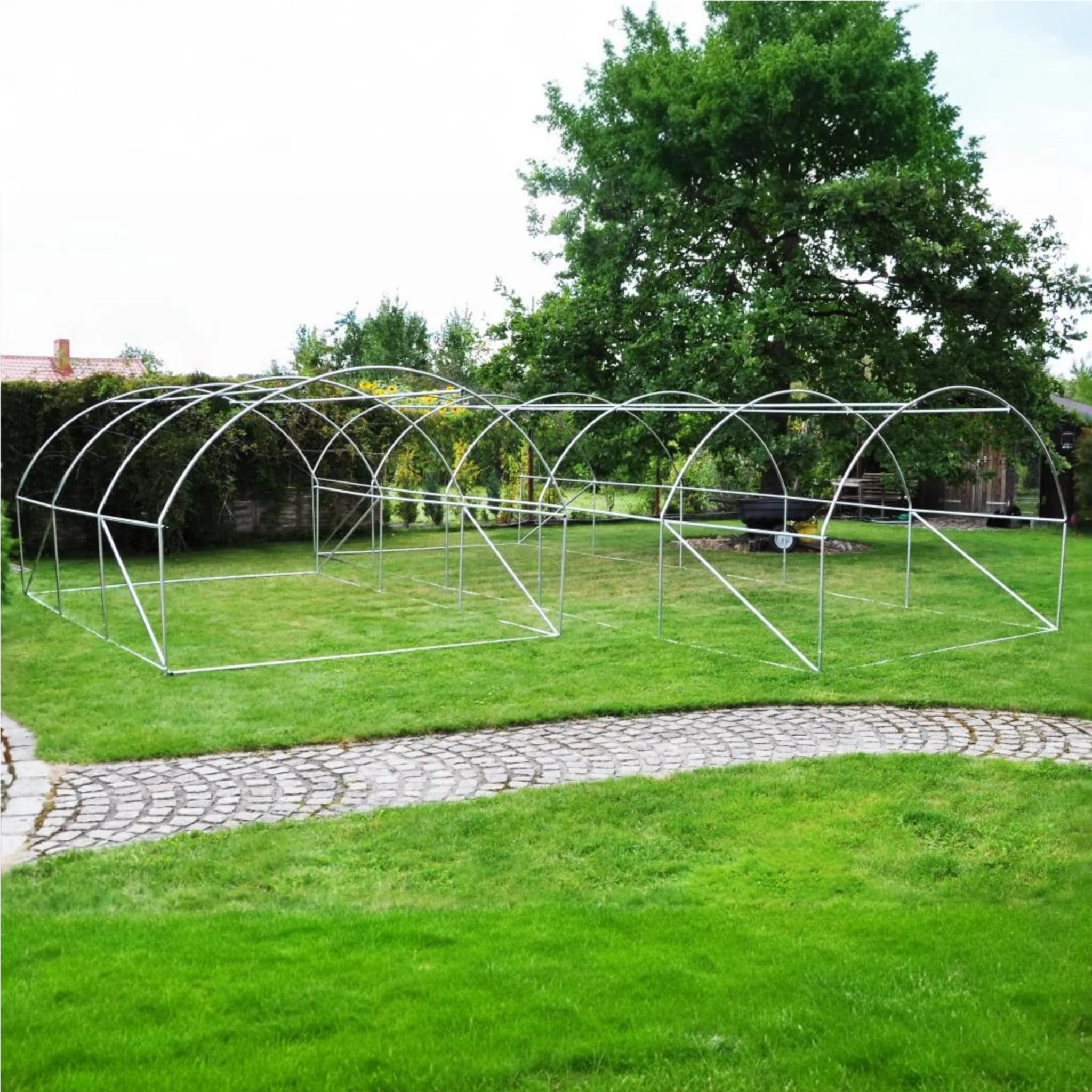 Szklarnia została wykonana z profili stalowych, które następnie zostały ocynkowane. Zapobiega to rdzewieniu konstrukcji i znacznie wydłuża żywotność budowli. Korozji unikniesz też dzięki temu, że konstrukcja nie jest spawana (miejsca spawania najbardziej narażone są na rdzę). Elementy łączone są ze sobą na śruby.