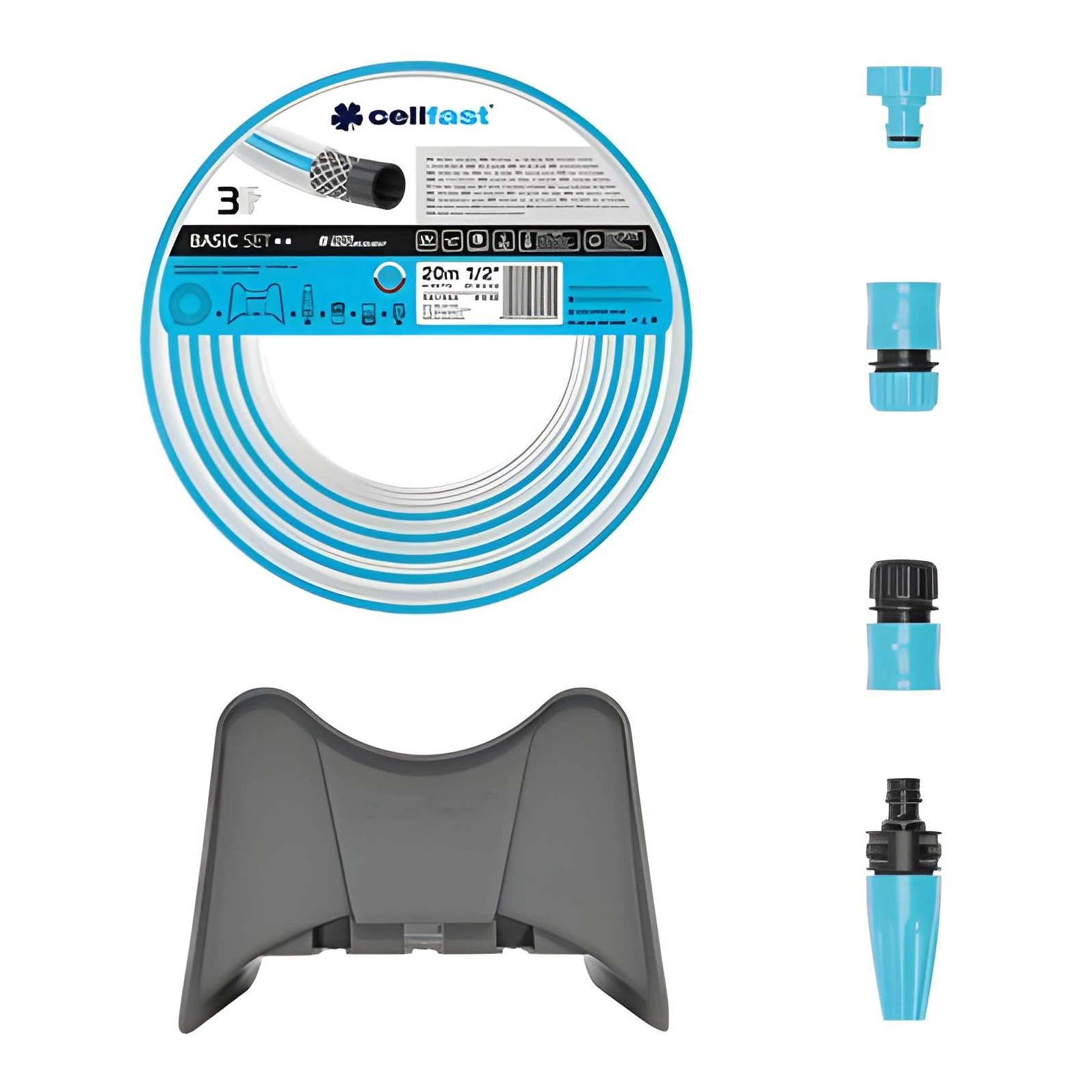 Wąż ogrodowy 1/2" 20 m + wieszak na wąż + zraszacze + złączki - Basic Cellfast