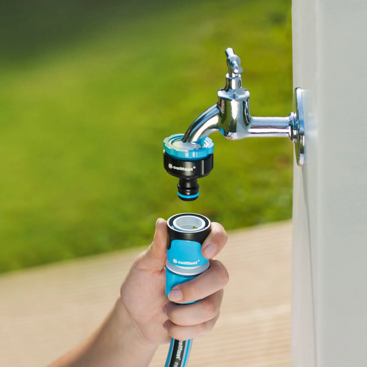 W skład zestawu wchodzą także szybkozłoączki 1/2" (13 mm), w tym jednozłącze z funkcją STOP oraz uniwersalne przyłącze kranowe (z regulacją 1/2, 3/4 lub 1"). Nie potrzebujesz żadnych dodatkowych akcesoriów, by zacząć z niego korzystać.