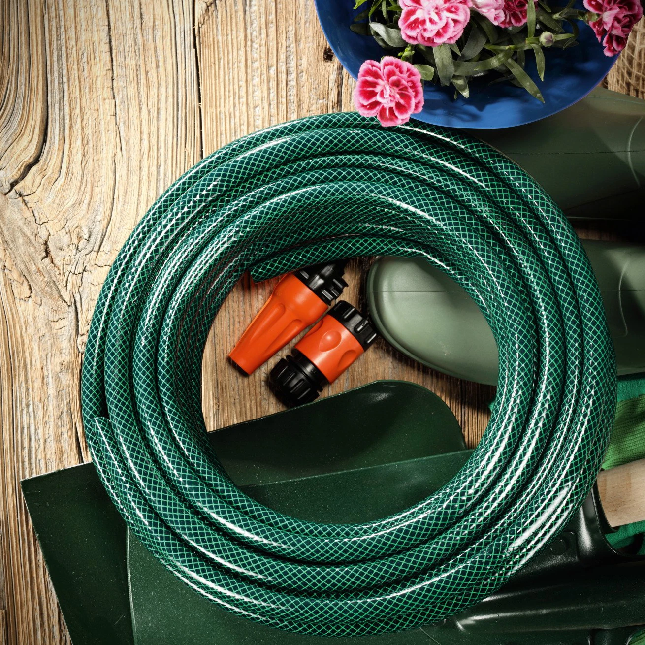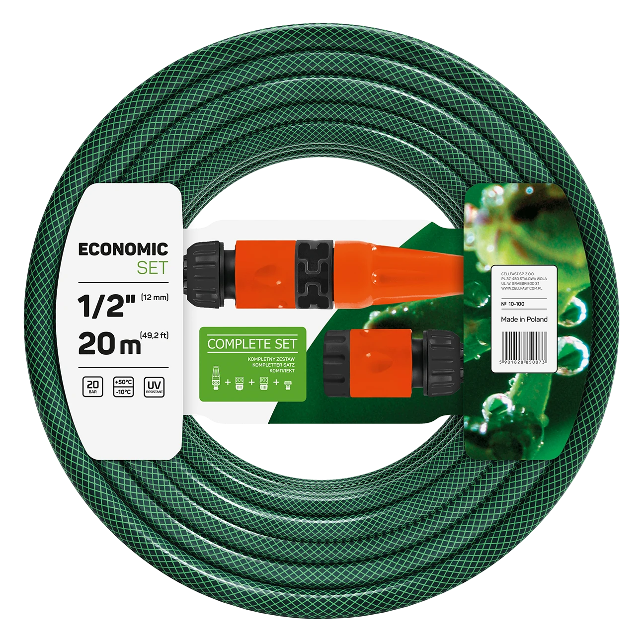 Wąż ogrodowy 3-warstwowy – Economic 1/2" 20 m + zraszacz + złączki + przyłącze - zestaw - Cellfast