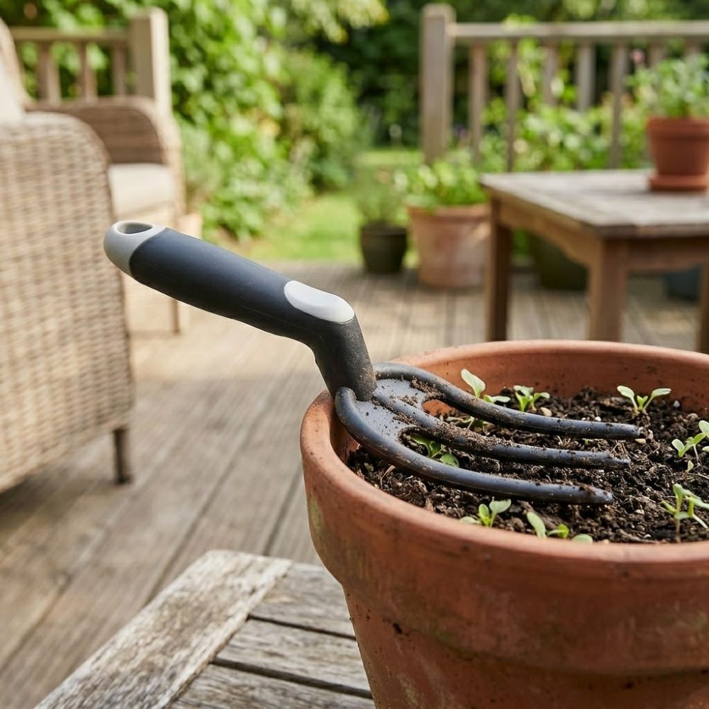 - bezpieczeństwo dla donic: gładkie wykończenie materiału sprawia, że widełki nie rysują powierzchni plastikowych czy ceramicznych doniczek,