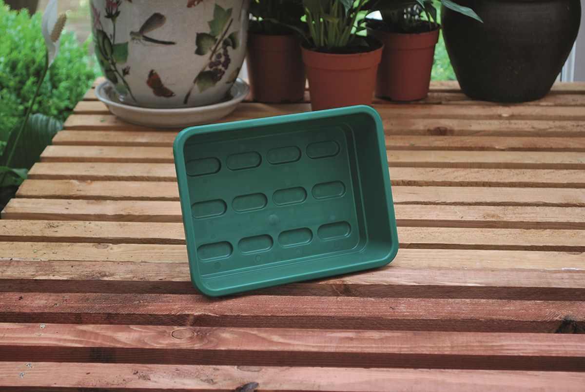 Zestaw: Mała pokrywka do tacy wysiewowej + Mała taca do wysiewu bez otworów – zielona - Garland - 23x17 cm