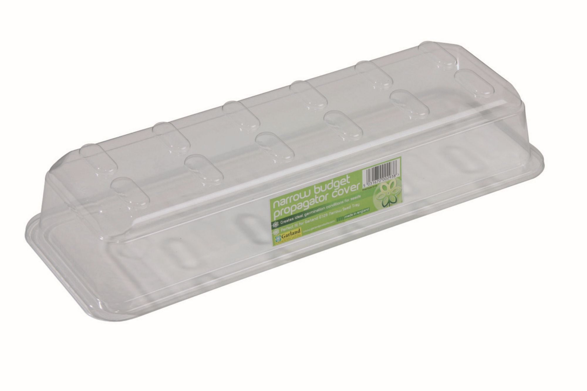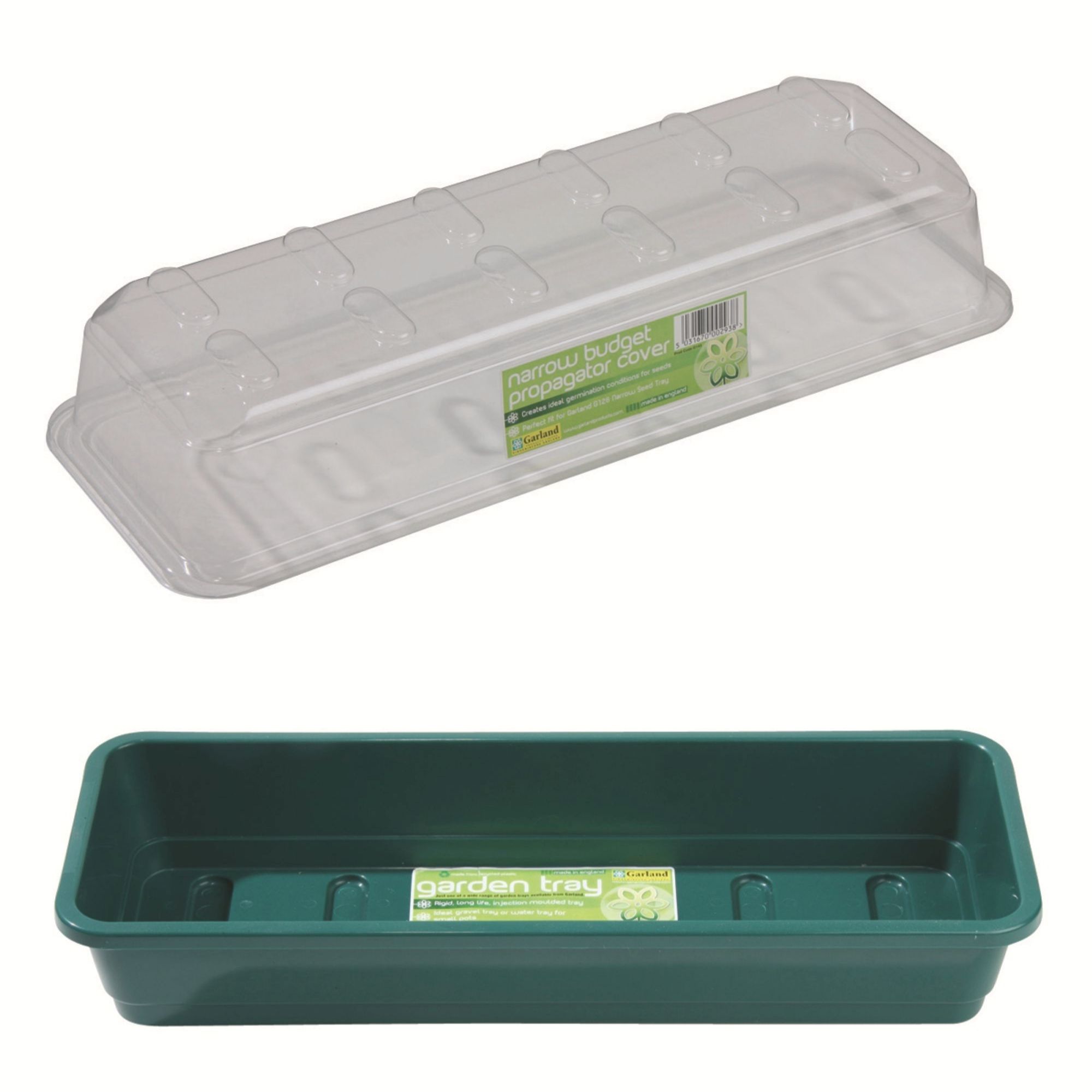 Zestaw: Wąska pokrywka do tacy wysiewowej + Wąska taca do wysiewu bez otworów – 37x13,5 cm - Garland