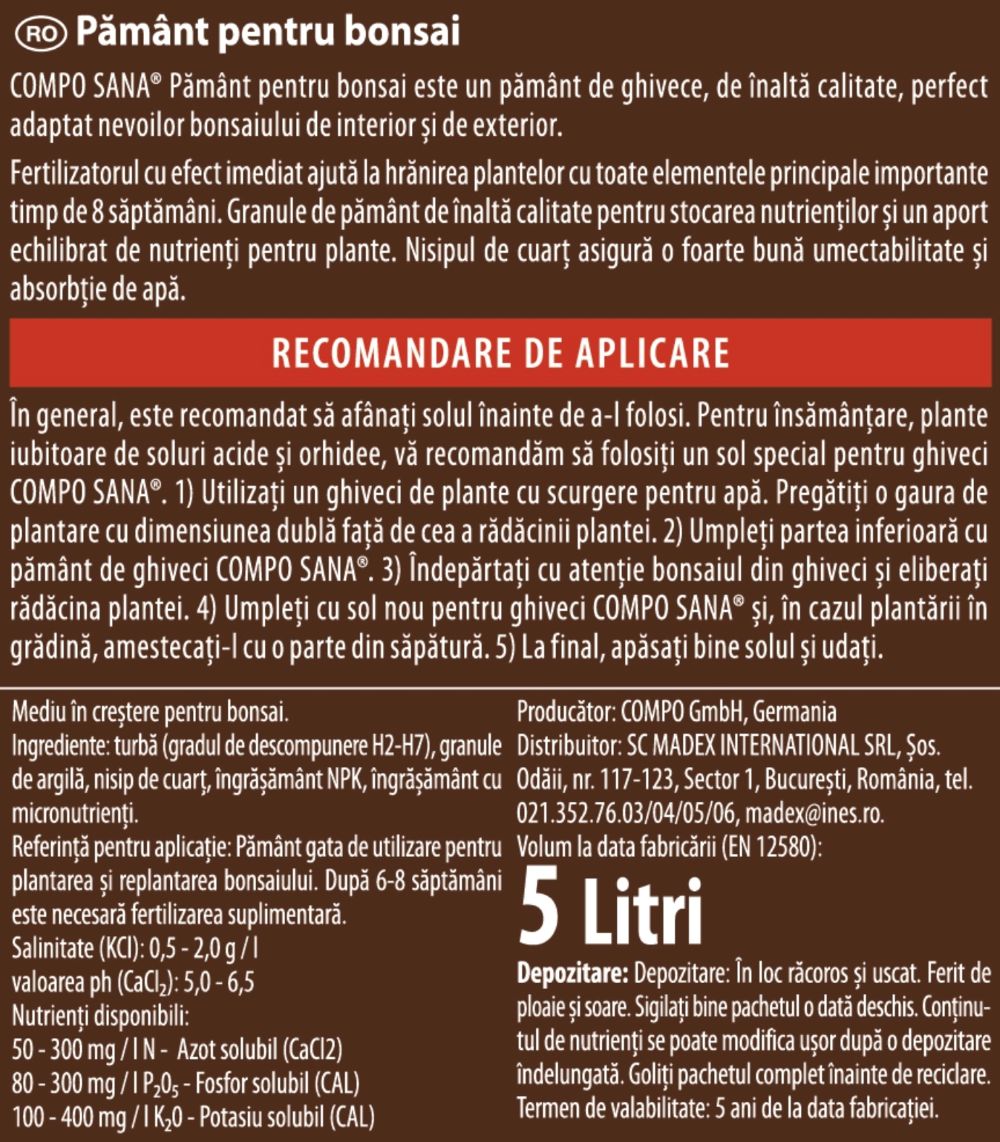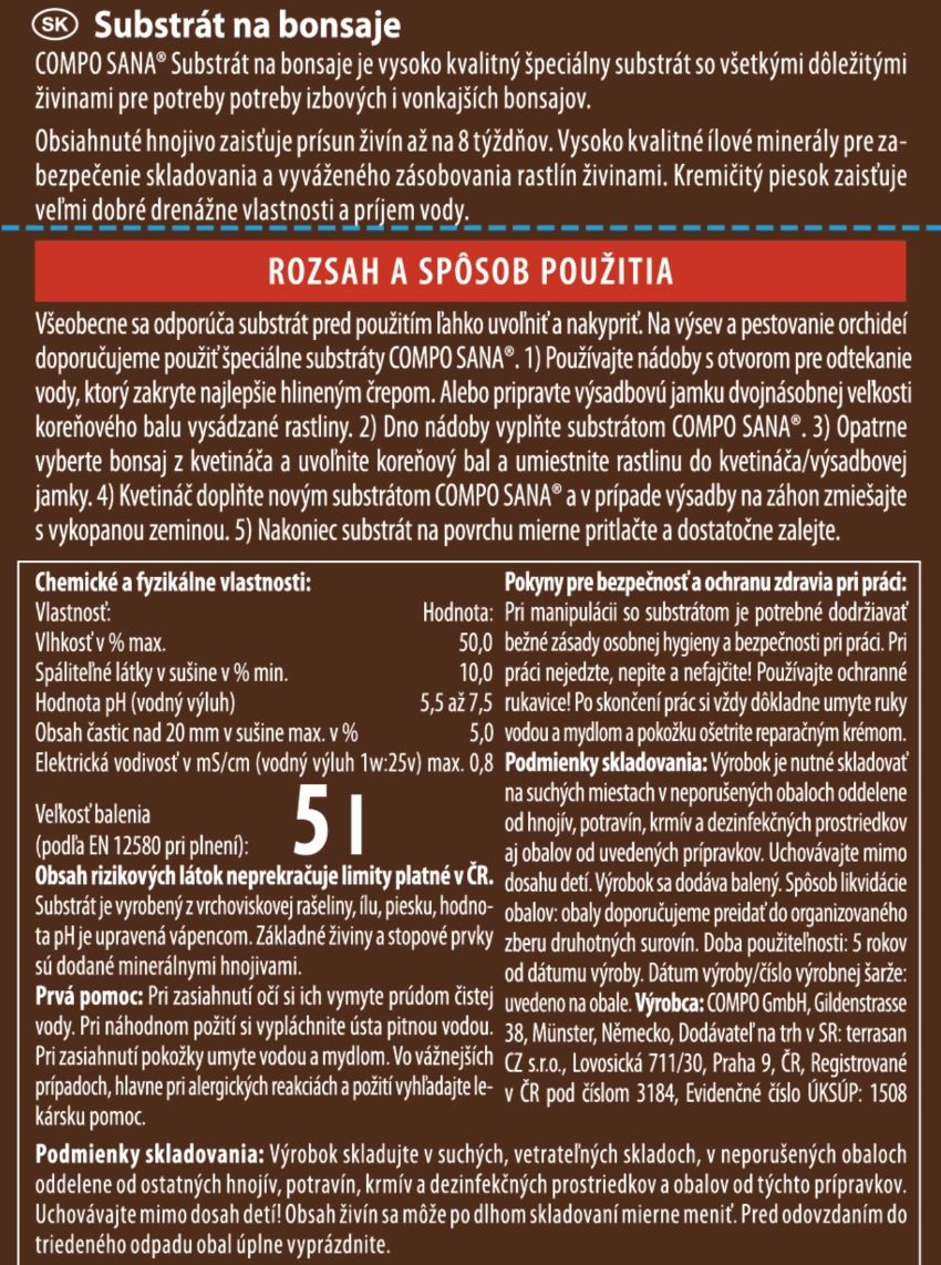 Ziemia do bonsai Compo to profesjonalne, starannie zbilansowane podłoże opracowane z myślą o wszystkich odmianach drzewek bonsai – zarówno tych uprawianych w domu, jak i na zewnątrz. Zapewnia idealne warunki do tworzenia zwartej, stabilnej bryły korzeniowej oraz zdrowego, harmonijnego wzrostu roślin.