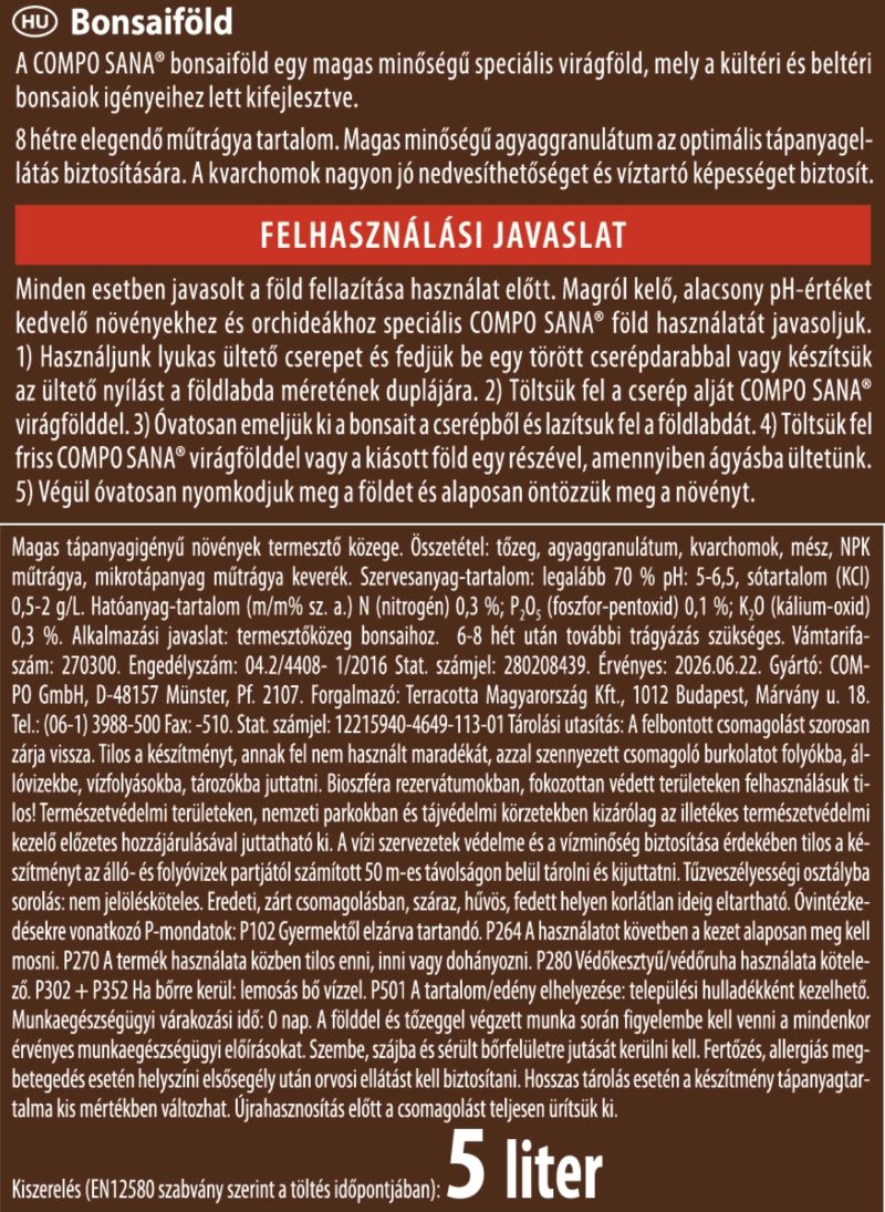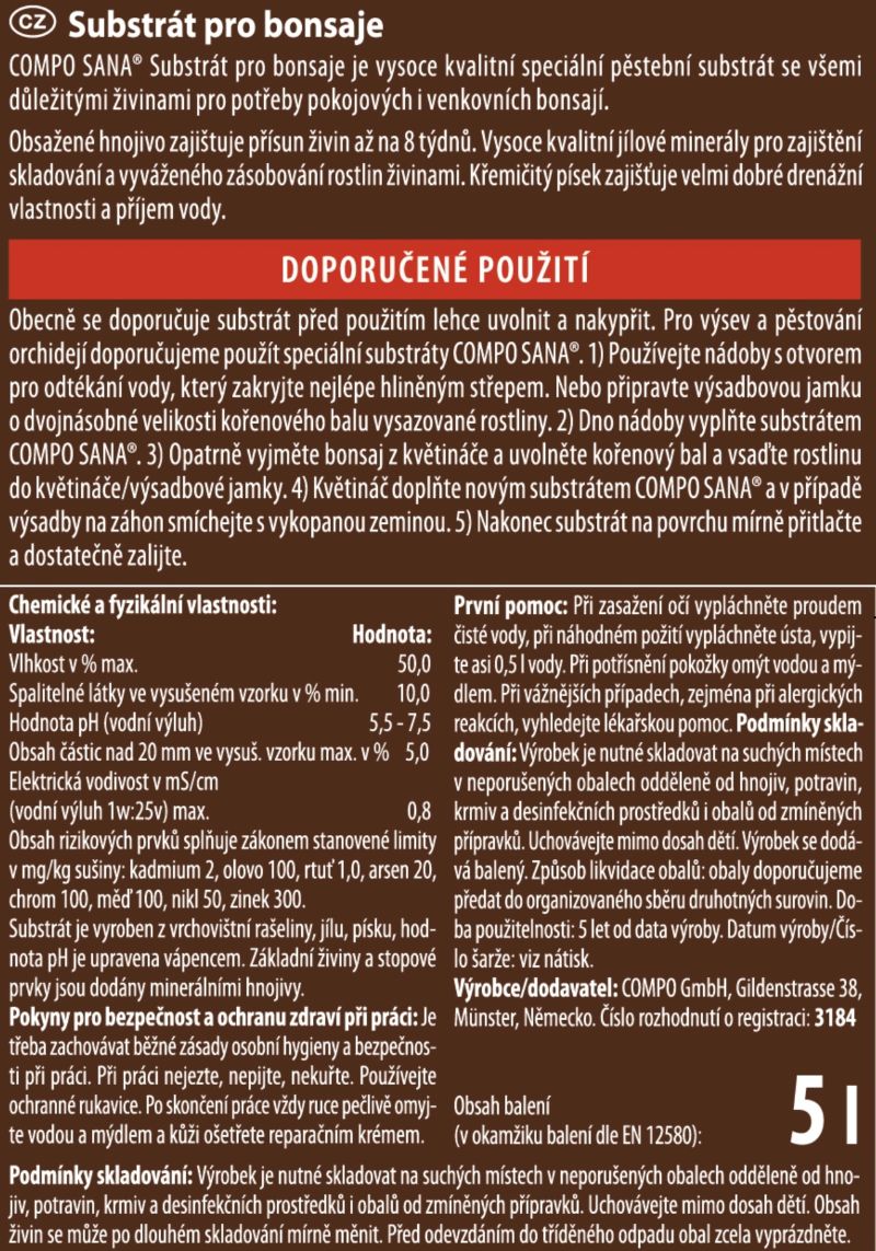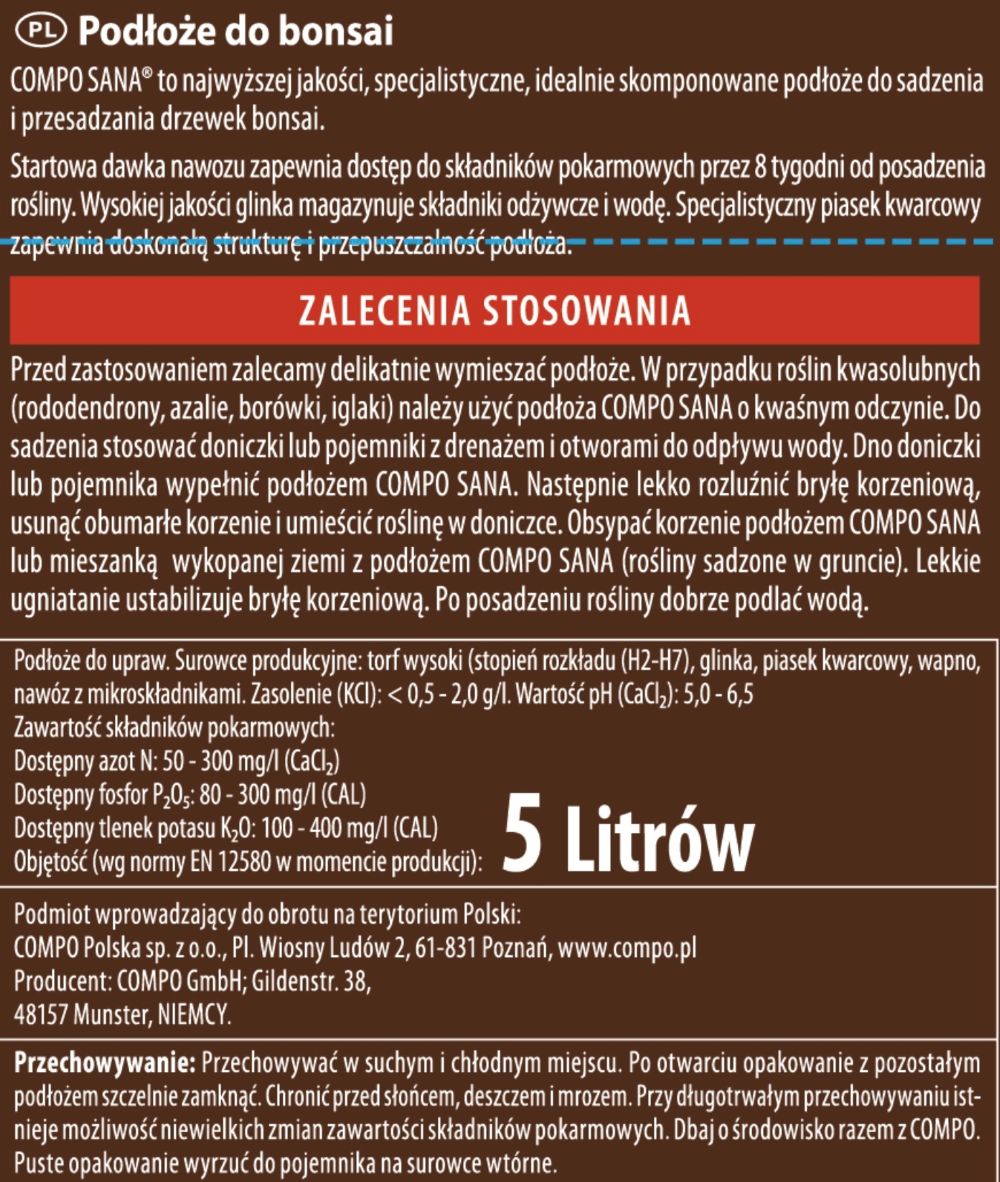 Ziemia do bonsai Compo 5 l – specjalistyczne podłoże do drzewek bonsai z glinką i piaskiem kwarcowym