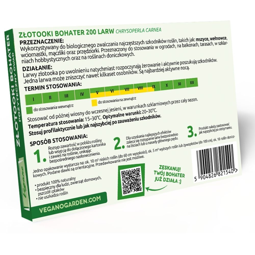 Złotooki bohater Vegano - 600 larw - 30 m2 ochrony